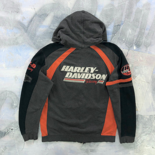 Vintage Harley Davidson Motorcycles Racing Hoodie Full Zip Sweatshirt M