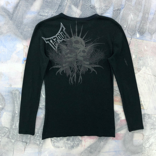 Vintage Y2K MMA Tapout Skull Long Sleeve Waffel Knit Shirt S