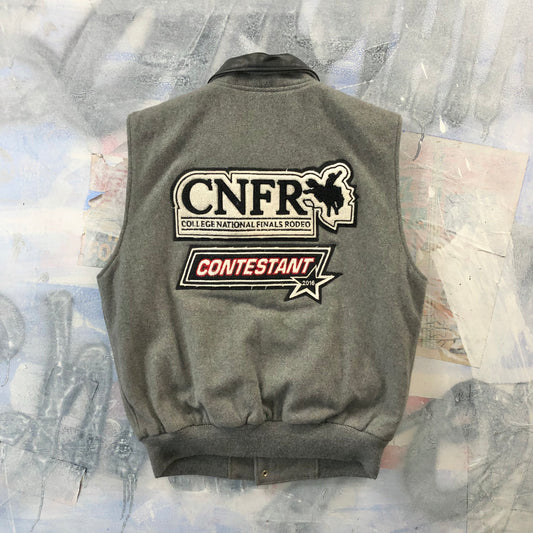 Vintage USA College National Finals Rodeo Leather Collar Quilted Lined Wool Button Vest M
