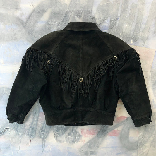 Vintage Western Hemingway Shoulder Padded Fringe Leather Bomber Zip Button Jacket L (Womens)