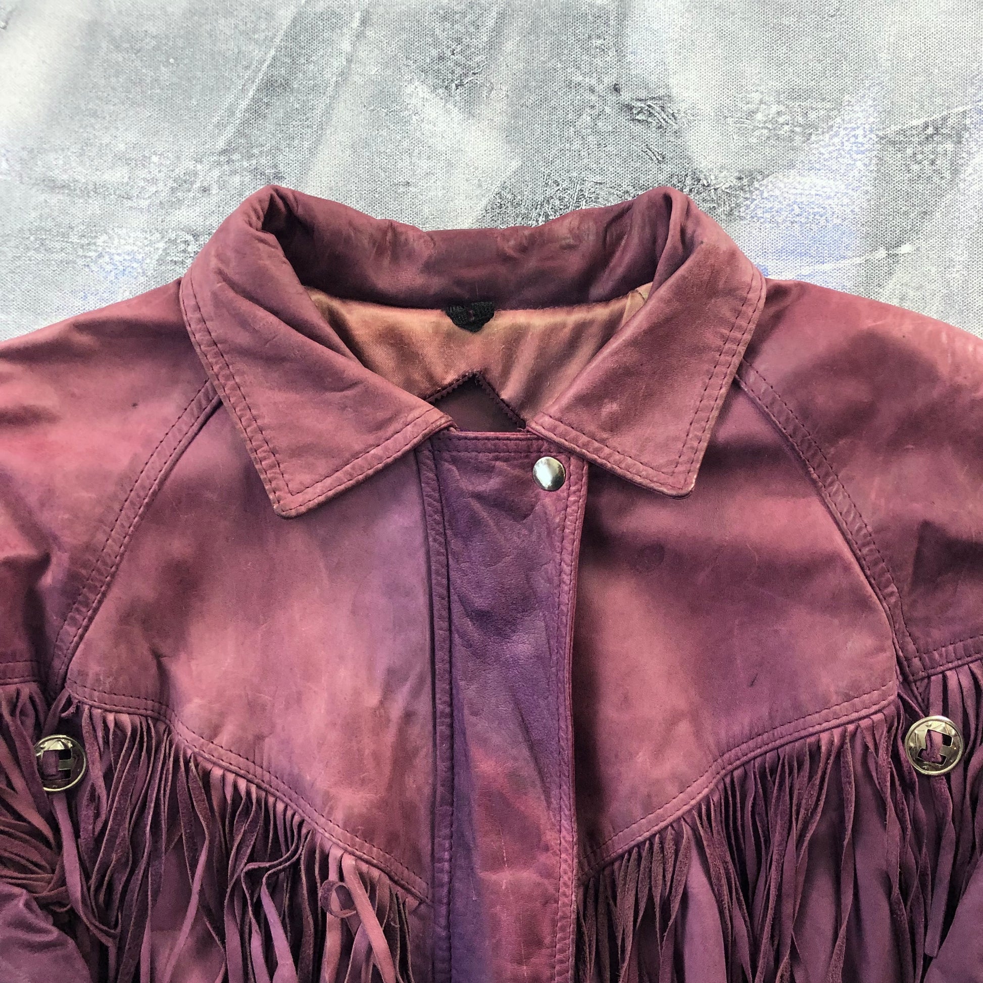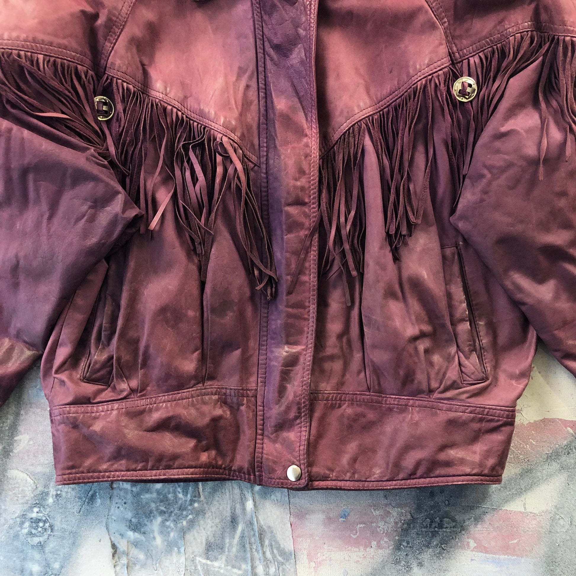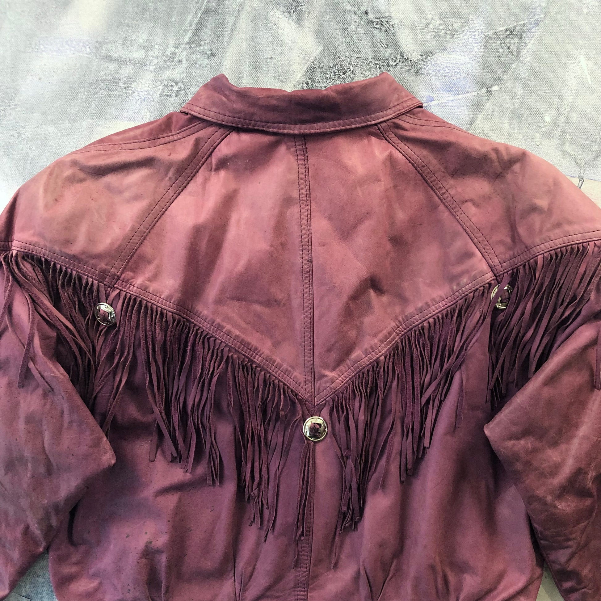 Vintage Western Hemingway Shoulder Padded Fringe Leather Bomber Zip Button Jacket L (Womens)