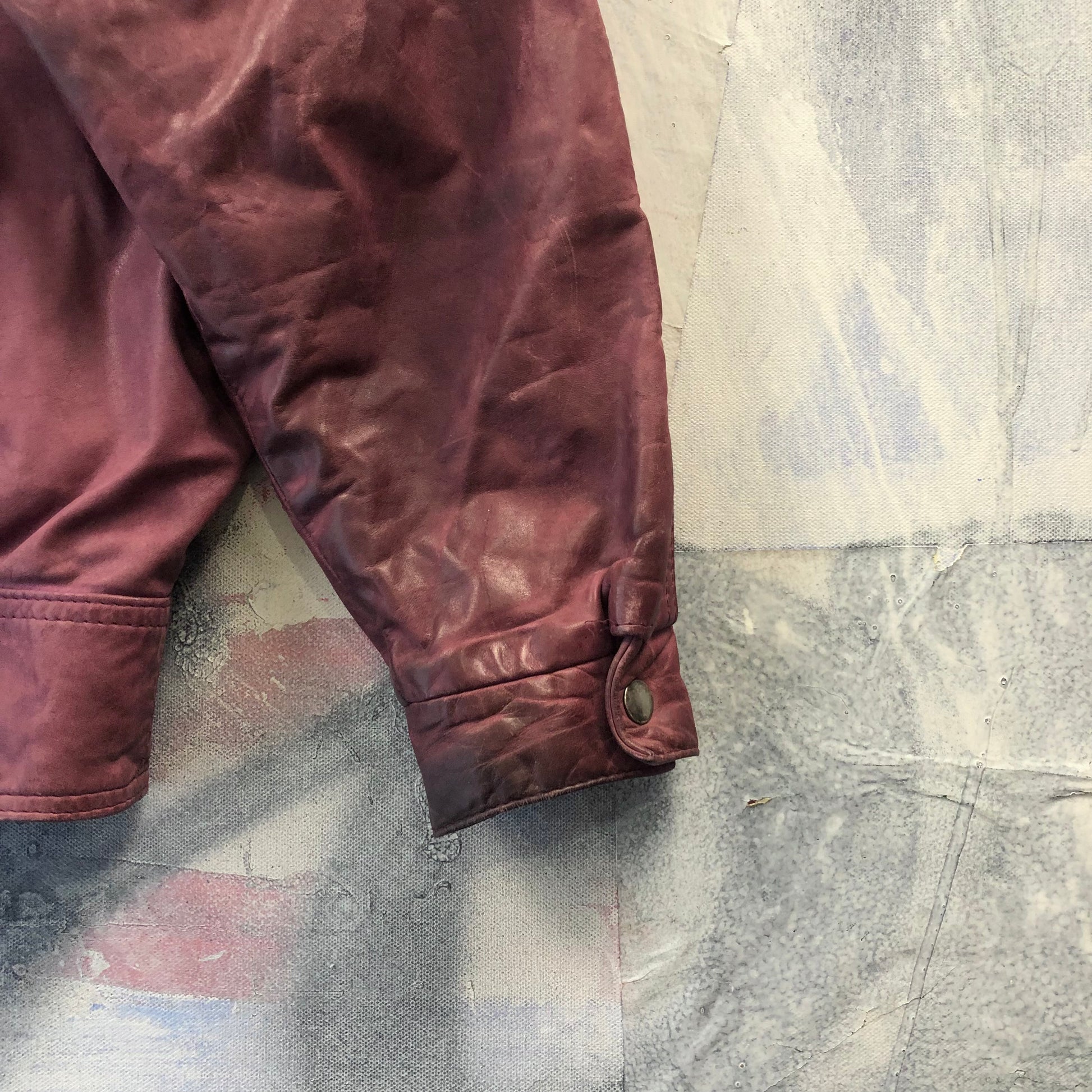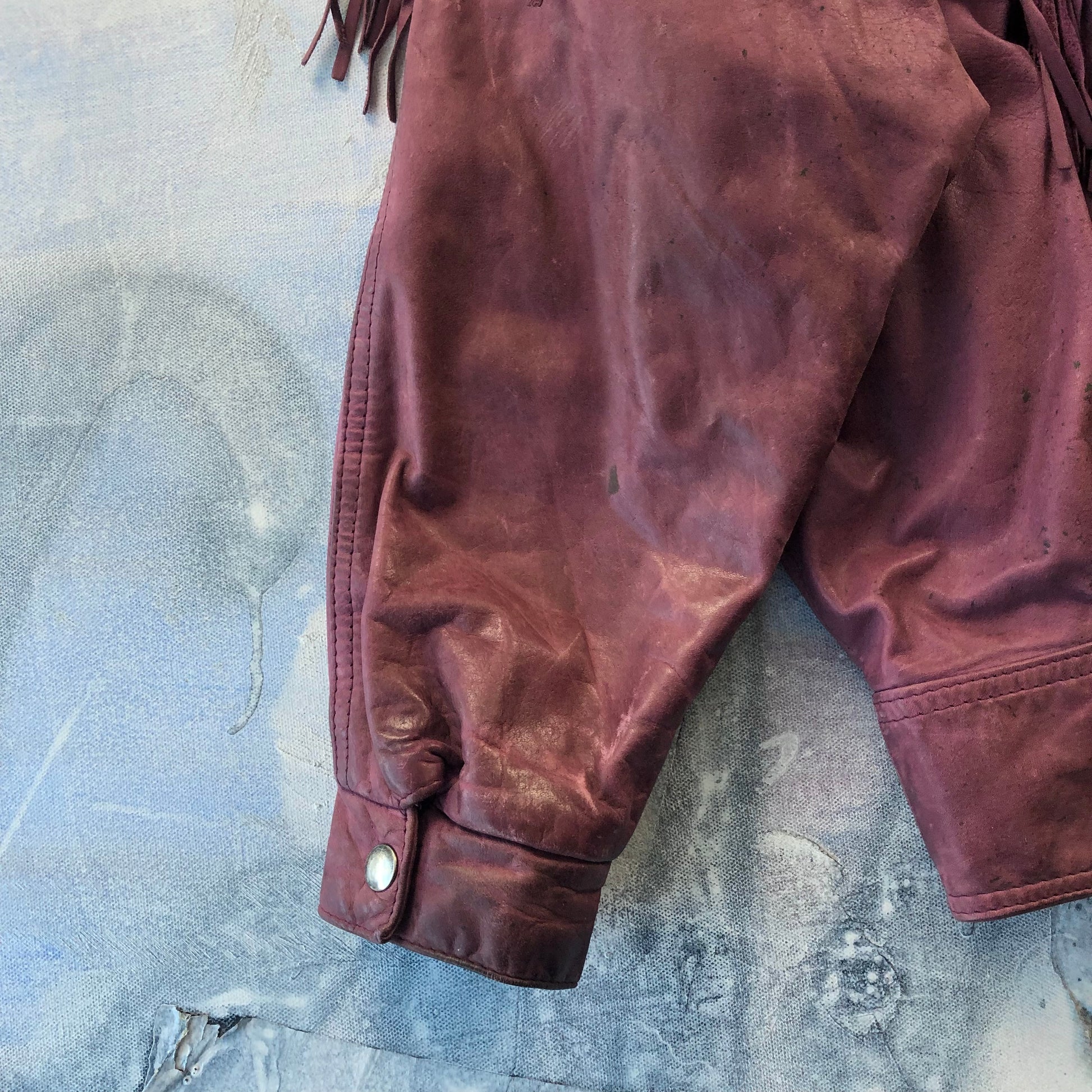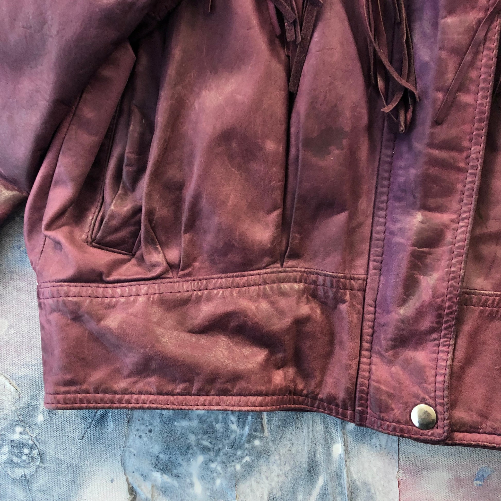 Vintage Western Hemingway Shoulder Padded Fringe Leather Bomber Zip Button Jacket L (Womens)