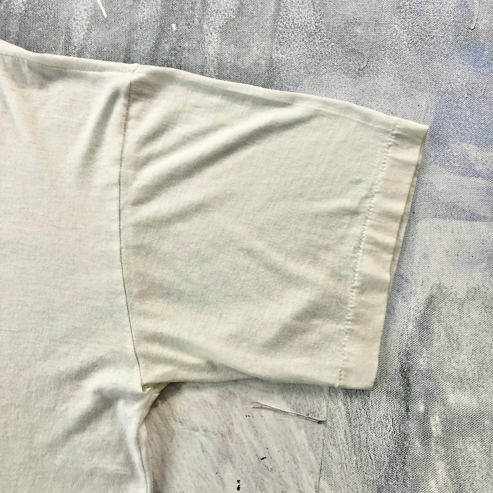 Condition: Very thinned aged cotton. Some unstitching on top right shoulder seamline. Used in worn condition.