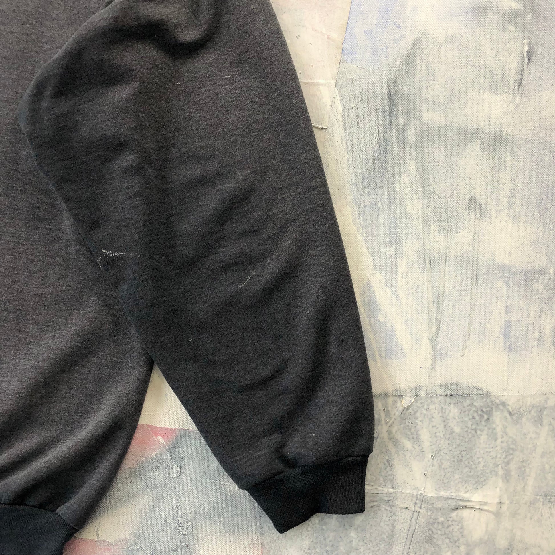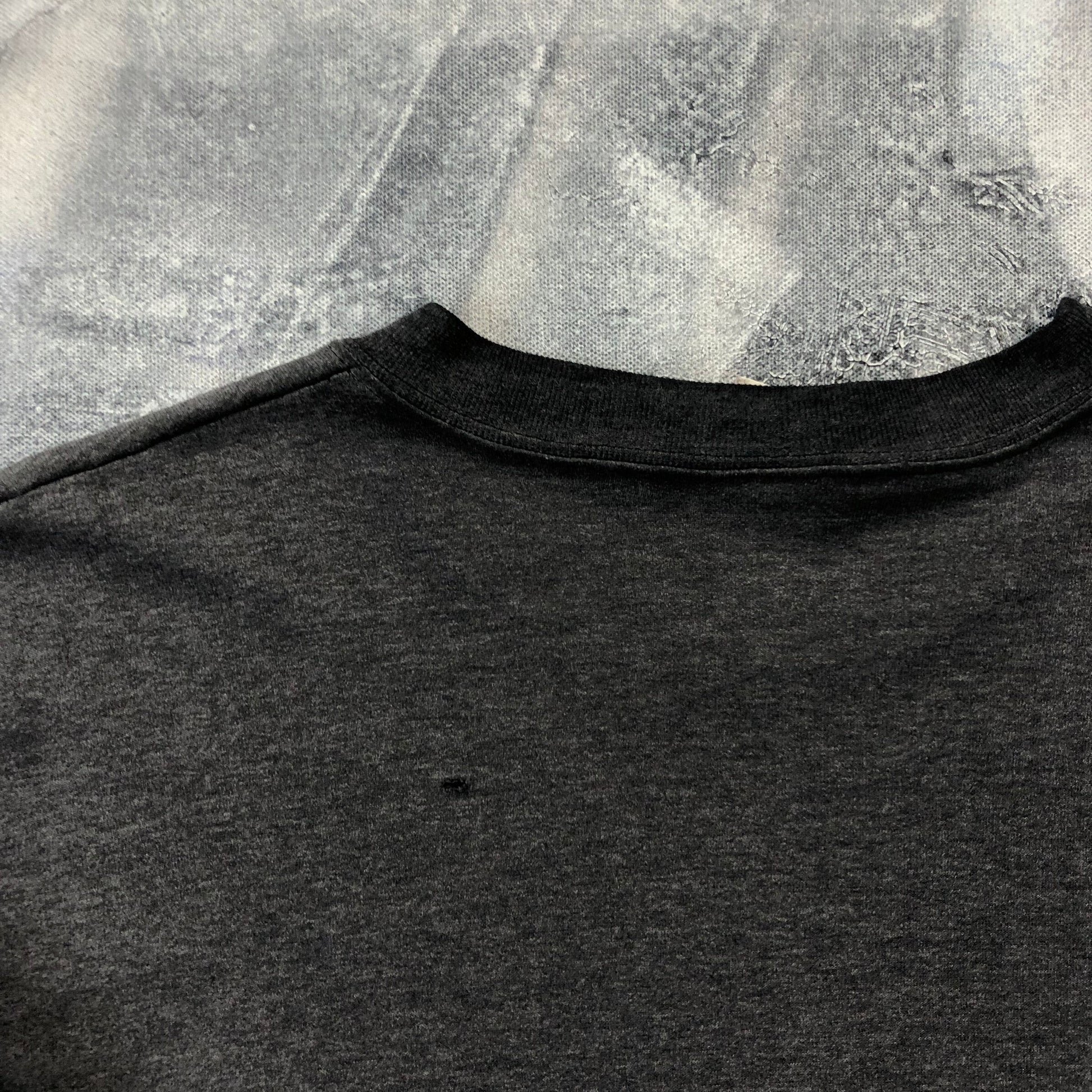 Condition: Few paint stains on front and back side. Small hole on back side. Used in worn condition.