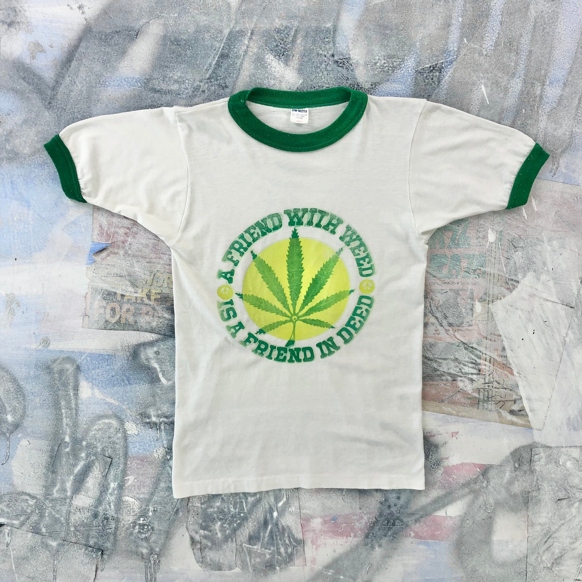 Vintage A Friend With Weed Is A Friend In Deed Single Stitch Ringer T Shirt S