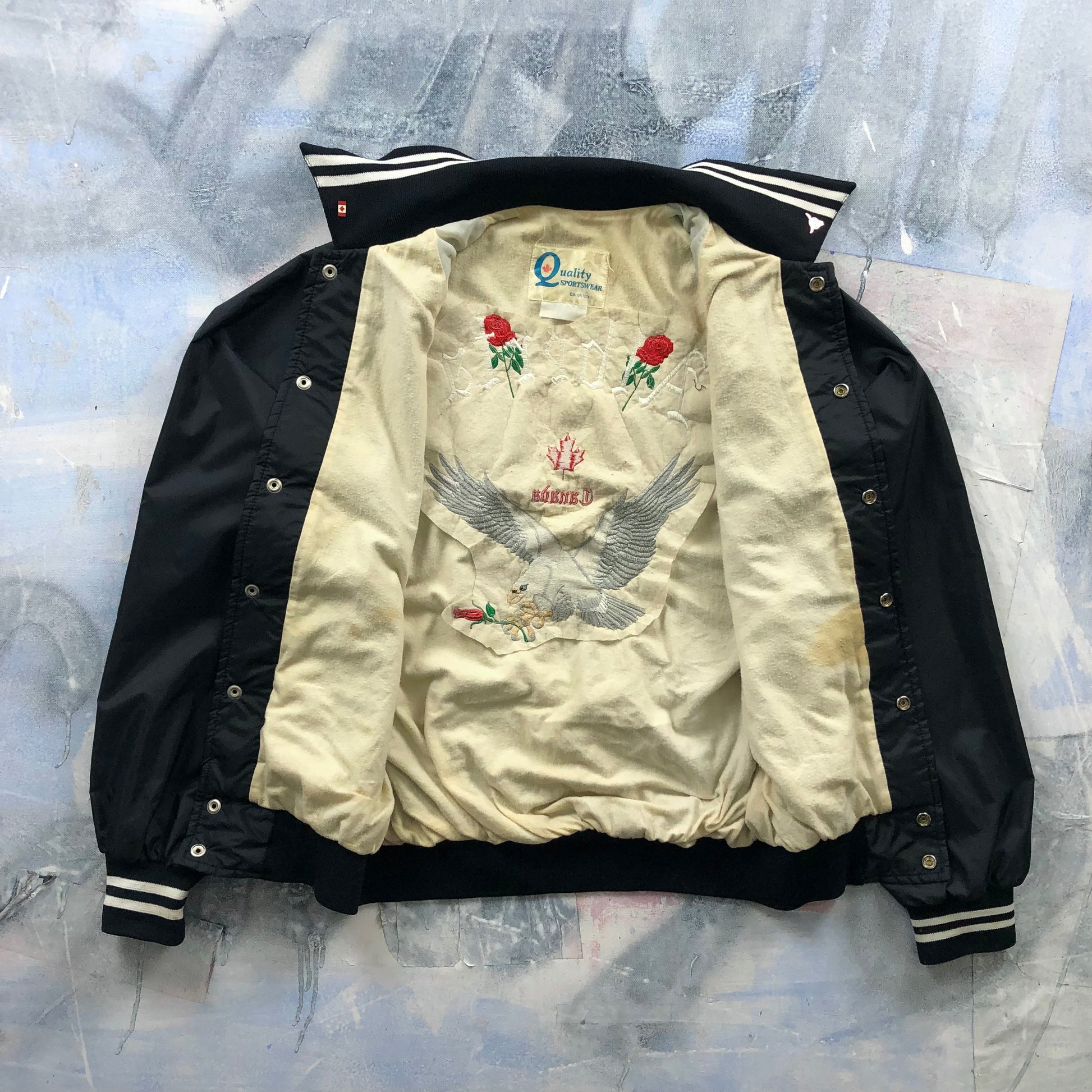 Vintage Alberta Canada Flying Eagle Blanket Lined Satin Bomber Button Jacket L