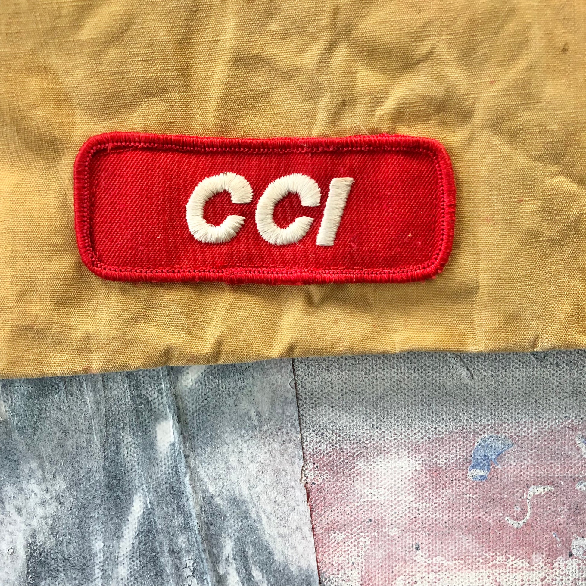 Condition: Black paint stain on front side. Zipper broken. Used in worn condition.