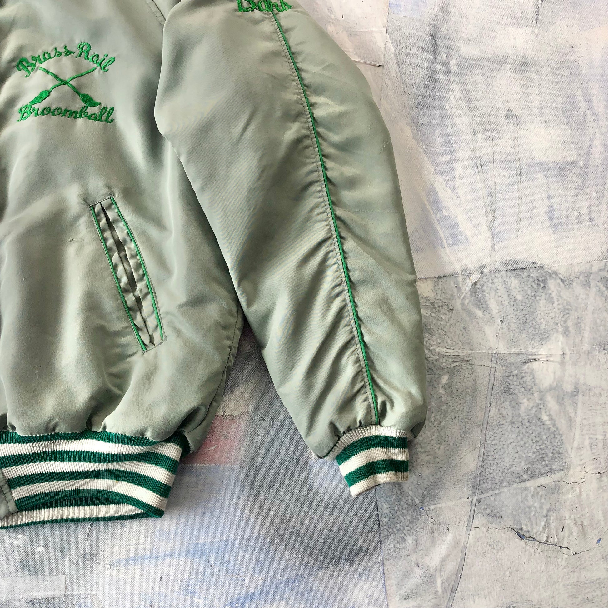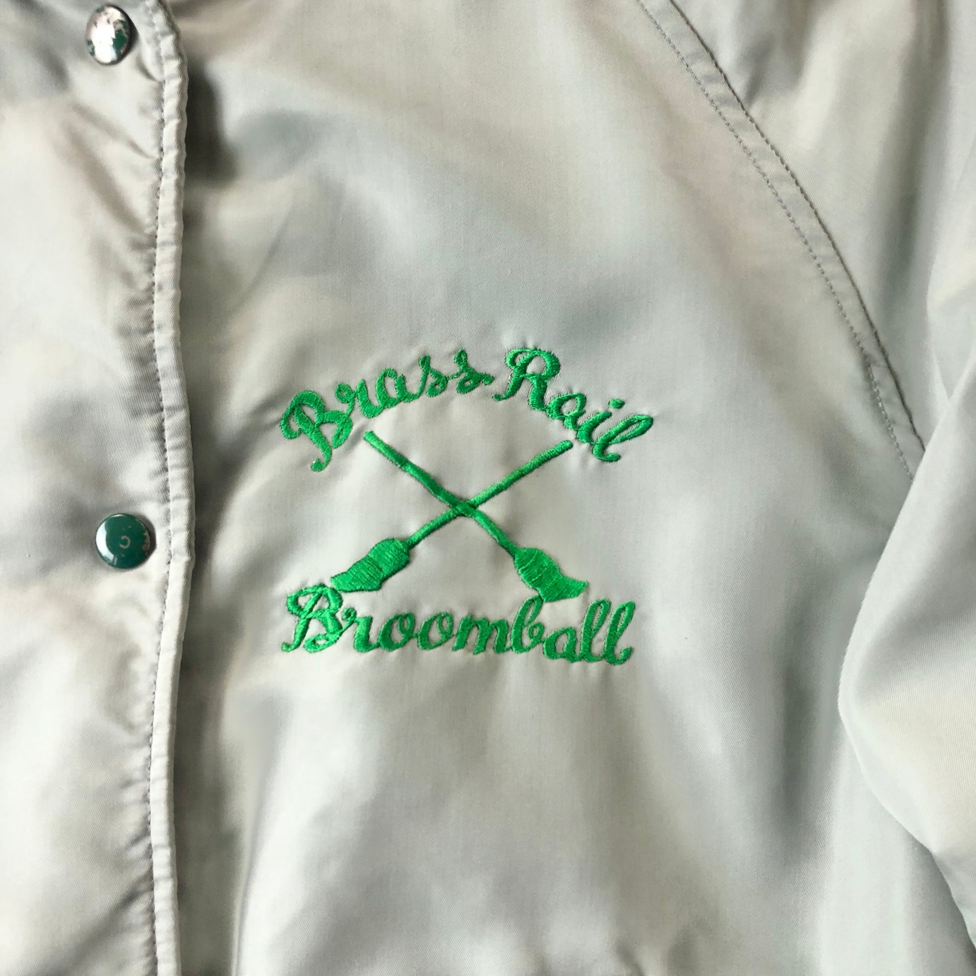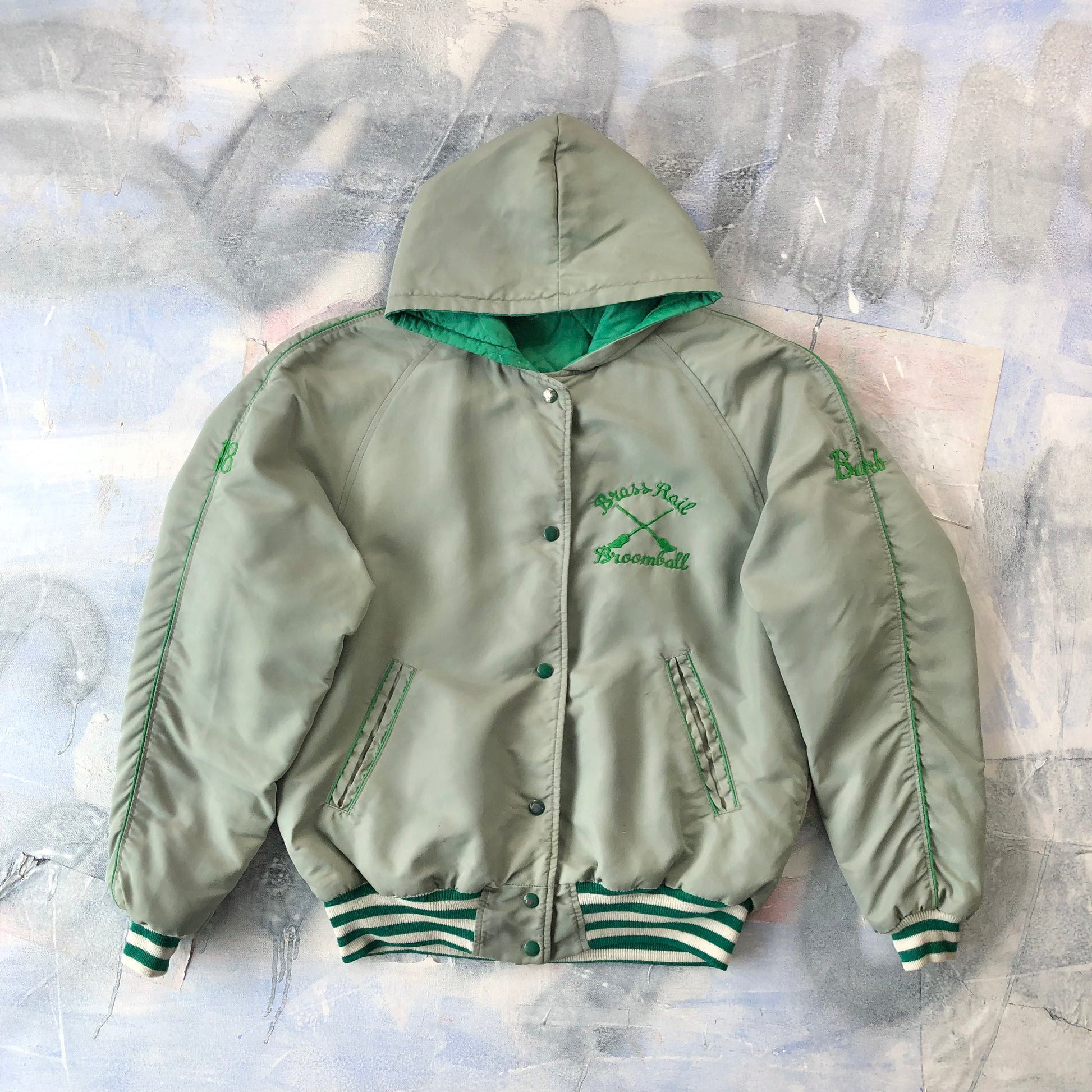 Vintage Brass Rail Broomball Quilted Lined Hooded Bomber Button Jacket L