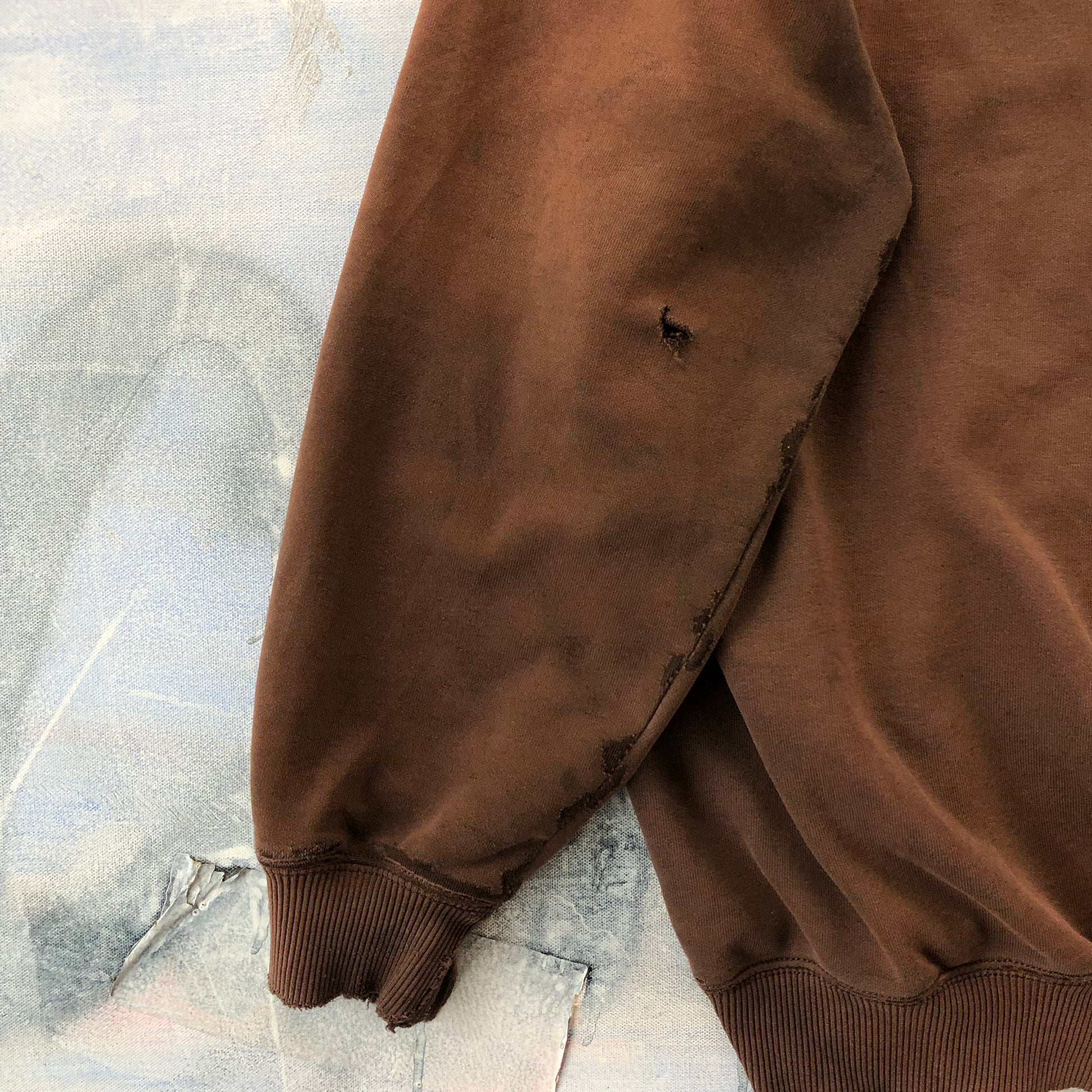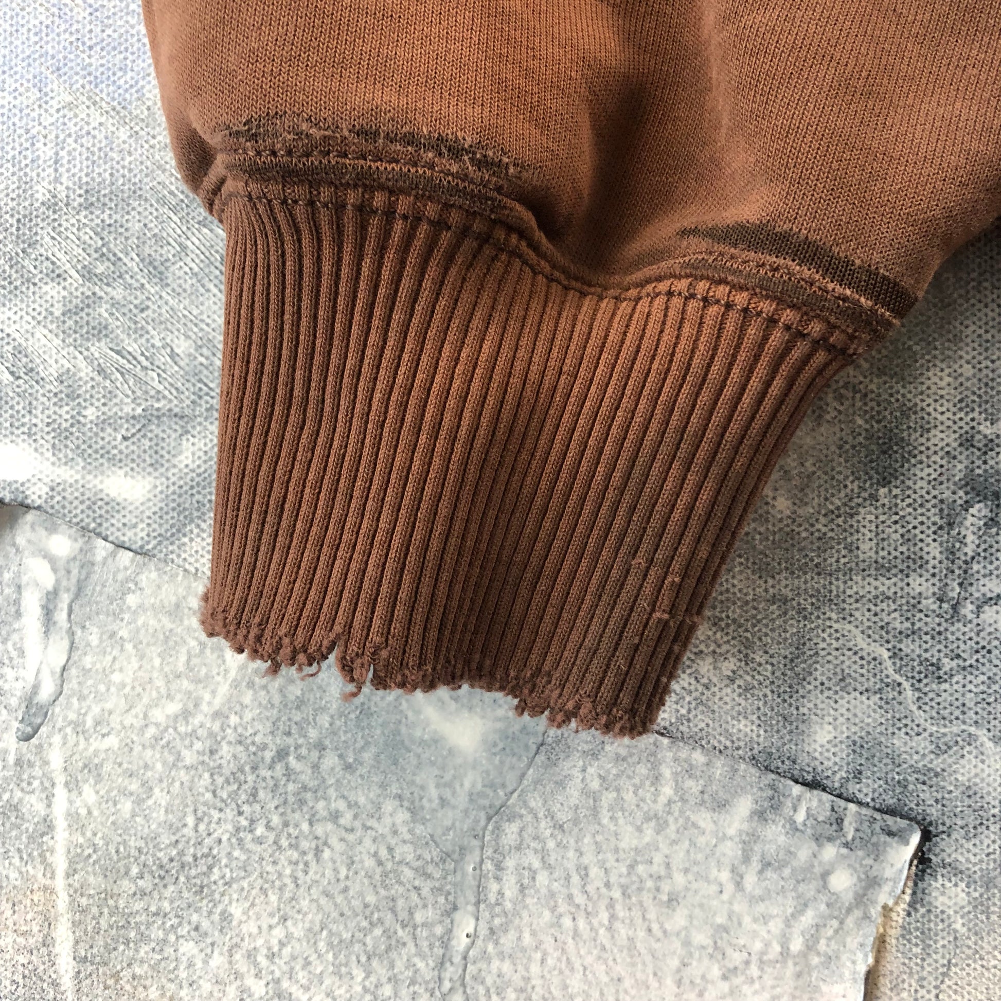 Condition: Sun faded. Distressed on sleeves and hemlines. Small hole in hemline on back side. Small hole on back left sleeve. Used in worn condition.
