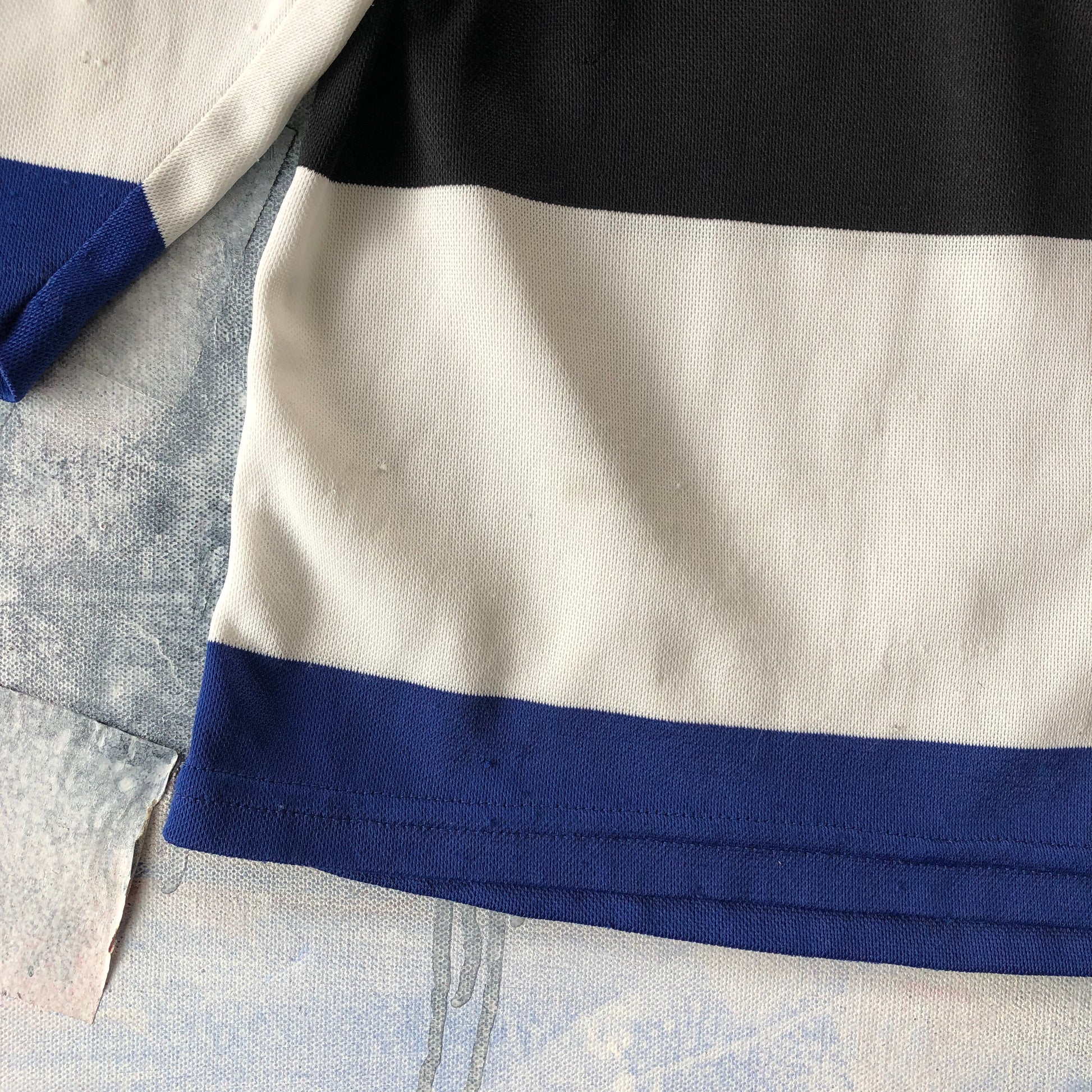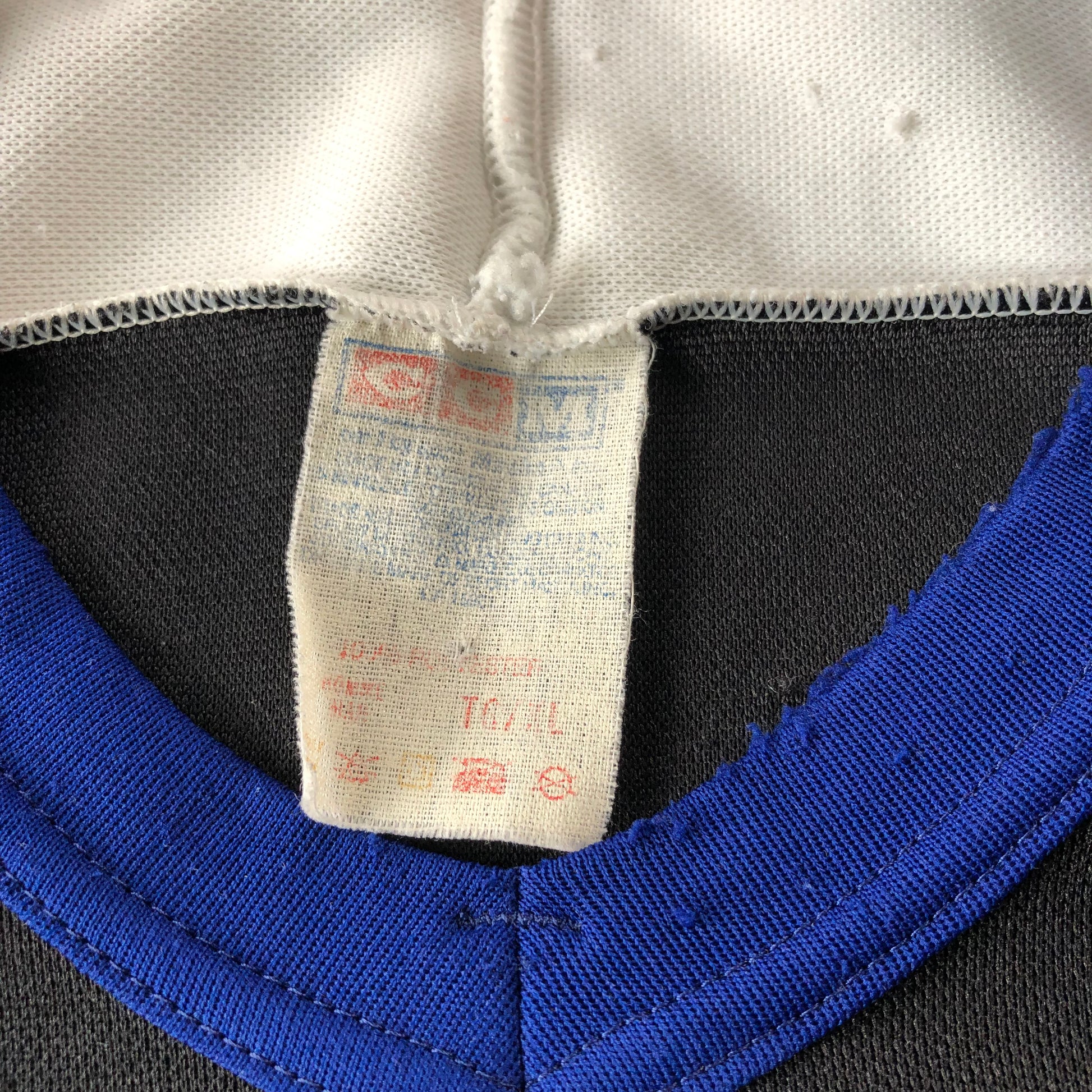 Condition: Some fraying on sleeves, collar, hemline, back and front side. Back side logo faded. Used in worn condition.