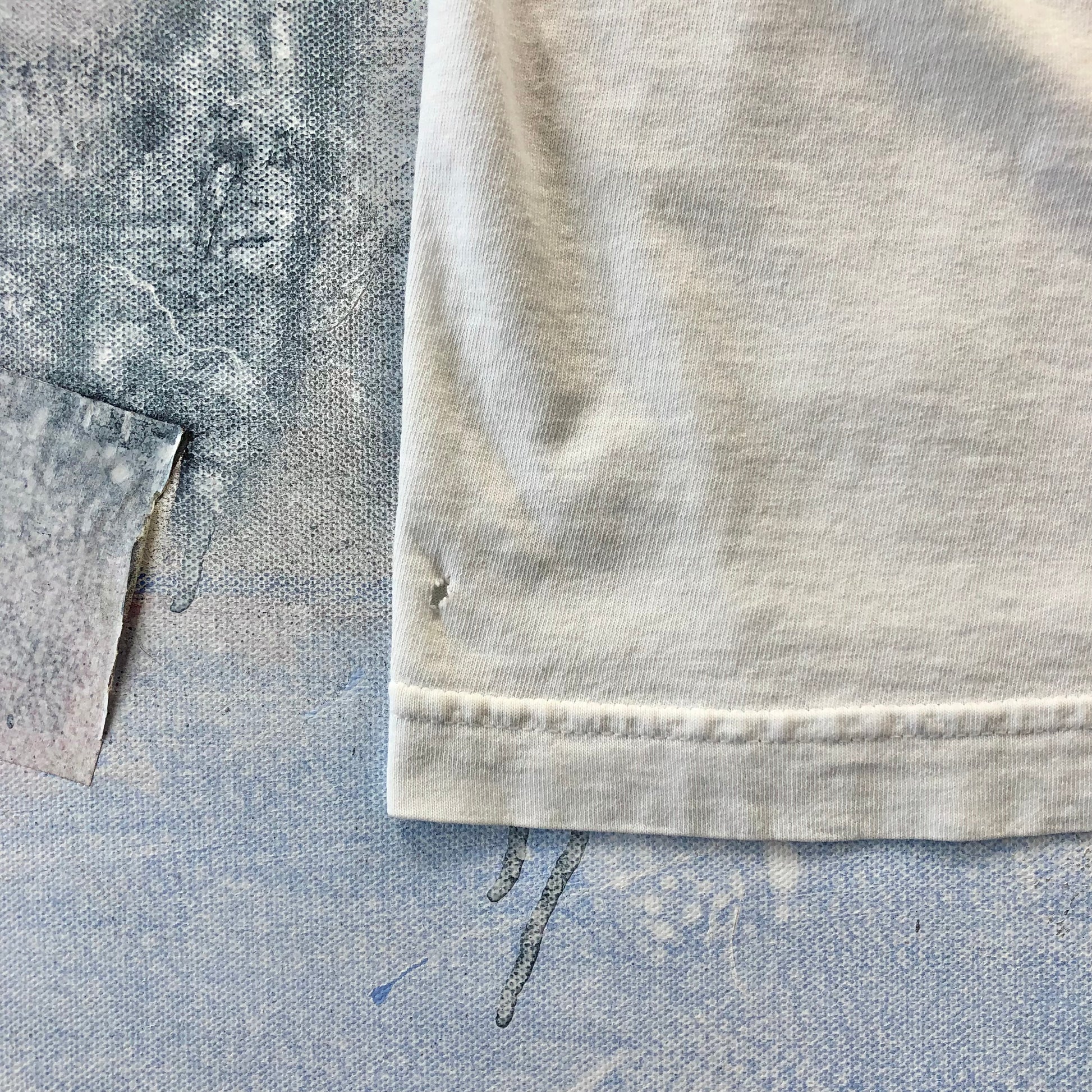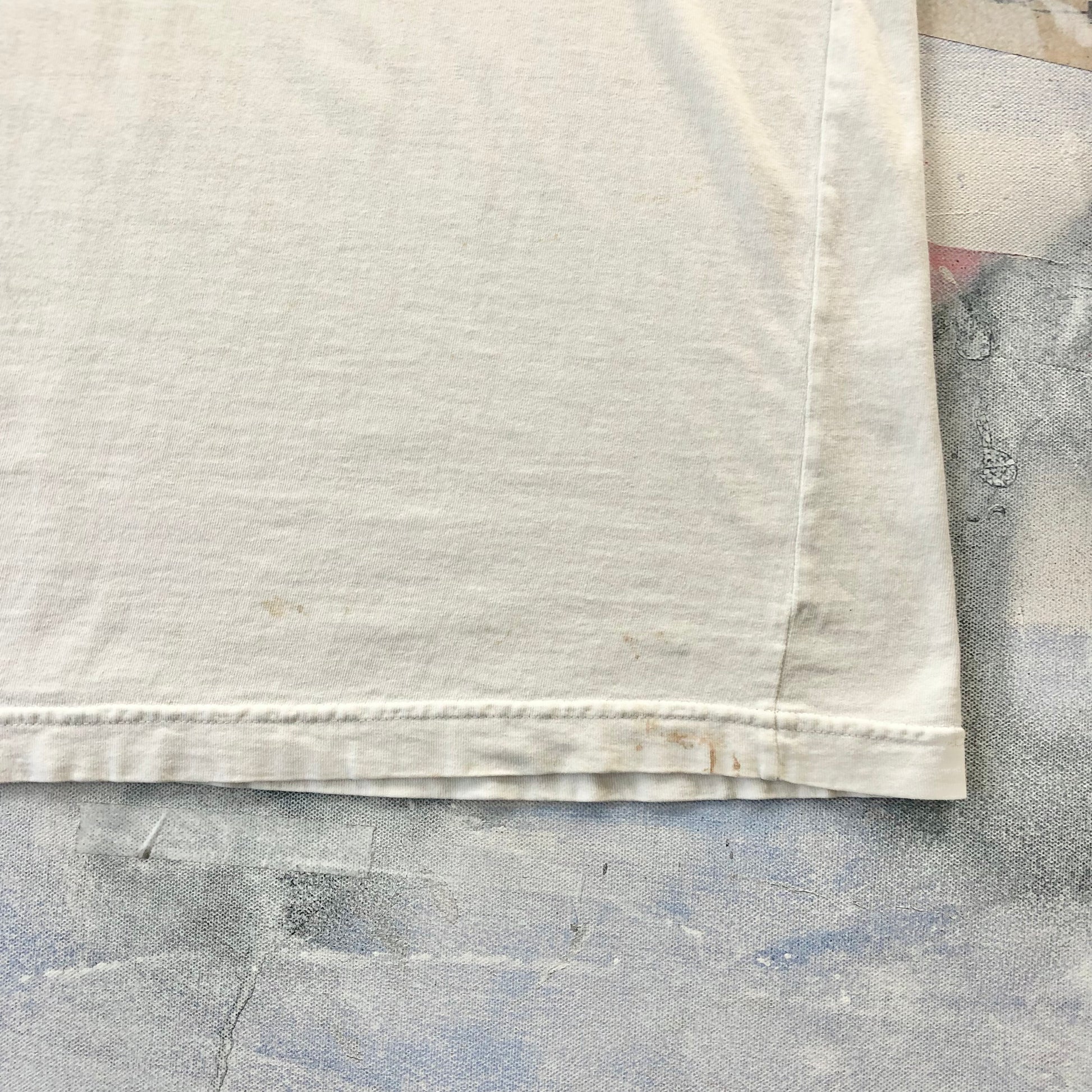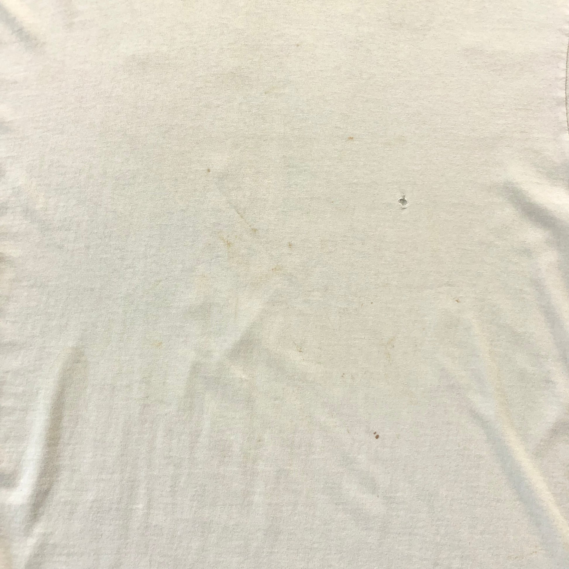 Condition: Small light stains on front and back side. Couple small holes on front and back side. Used in worn condition.