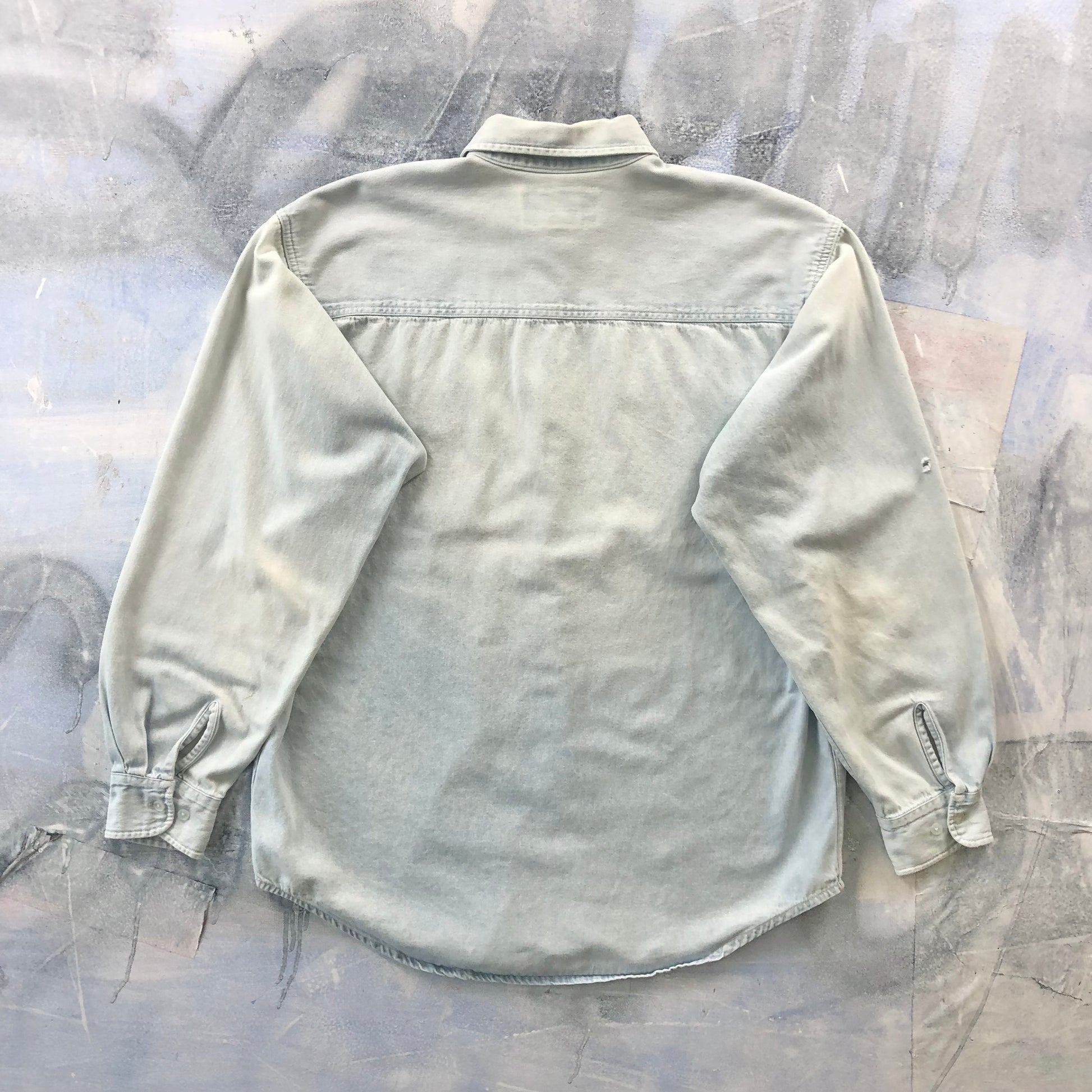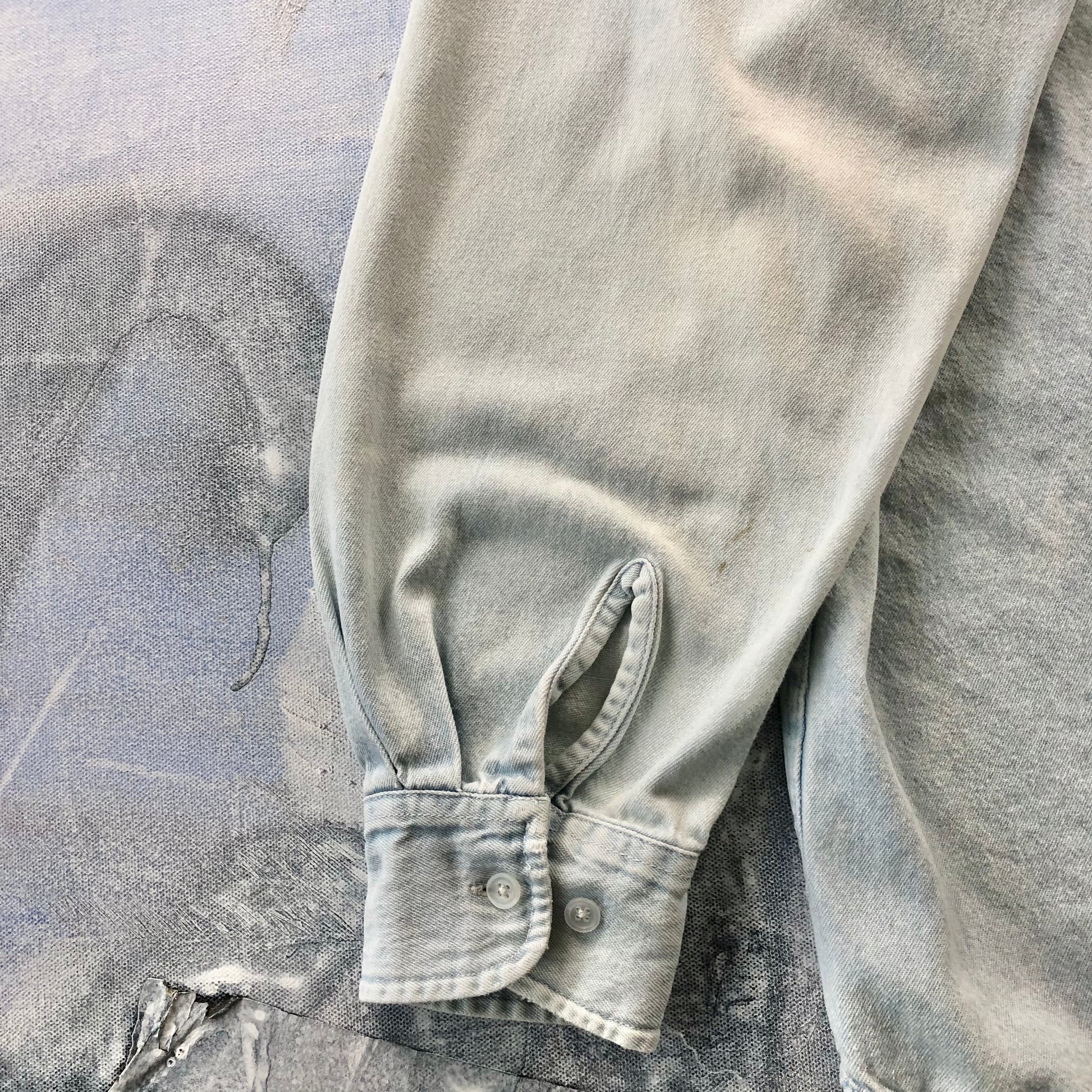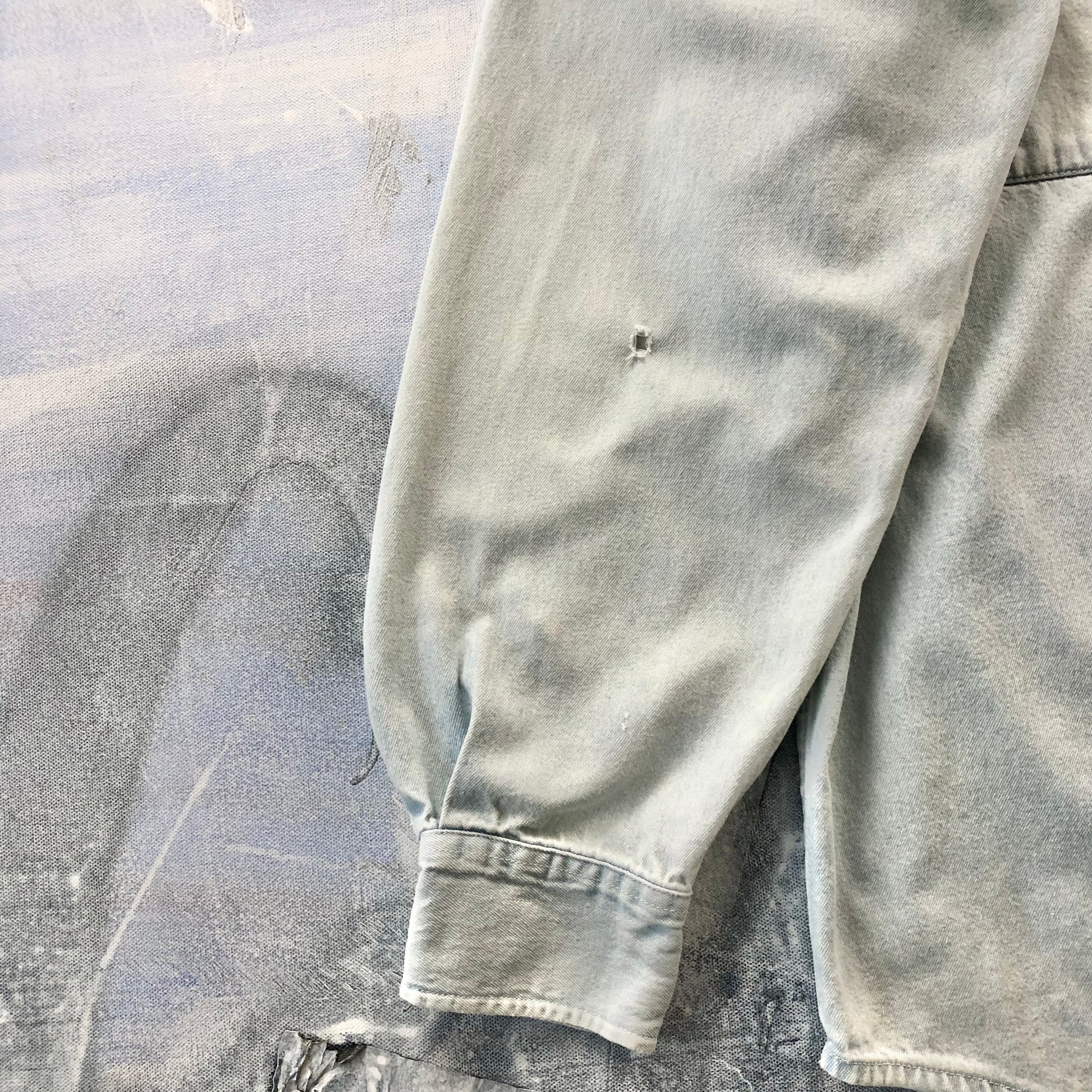 Condition: Couple small holes on left arm sleeve. Faded, used in worn condition.
