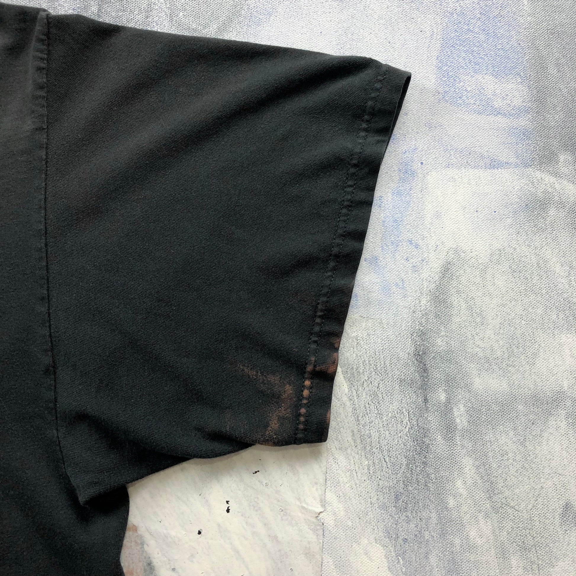 Condition: Few small holes on front side. Small hole under left armpit. Some bleach stains on sleeves. Used in worn condition.