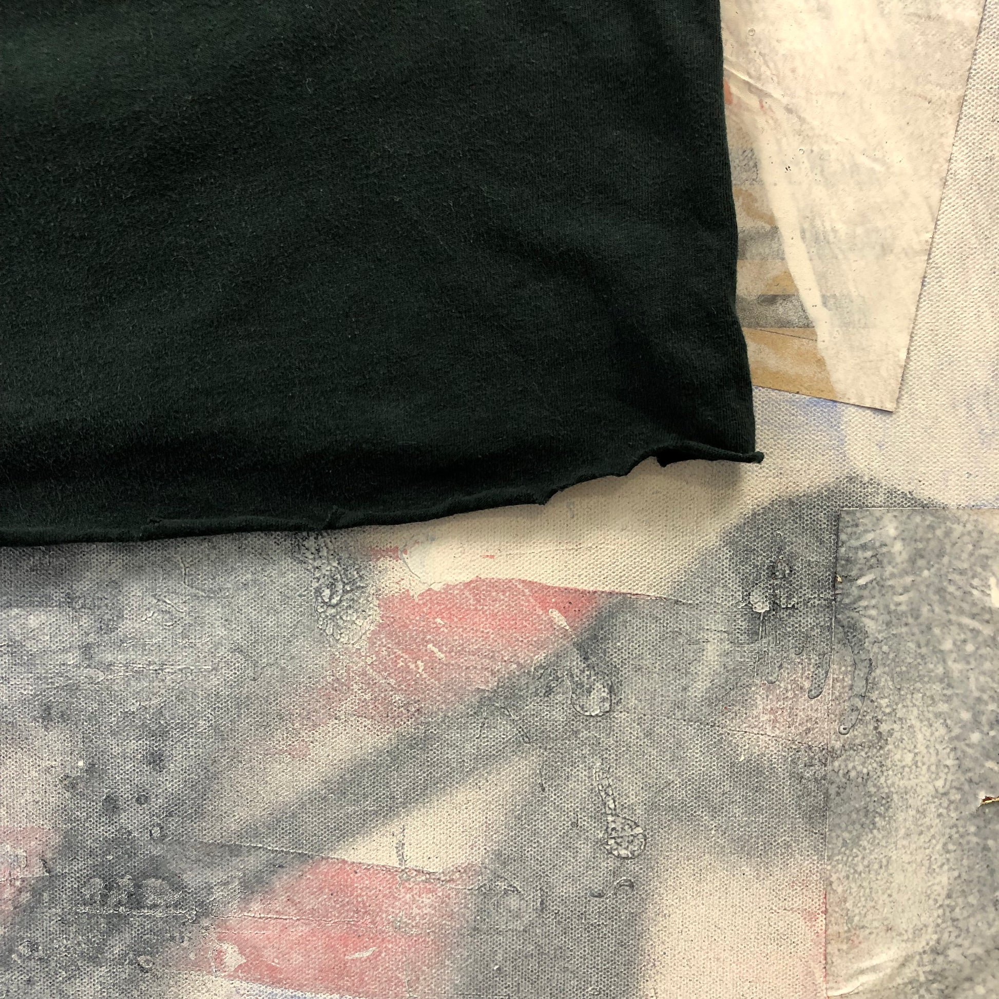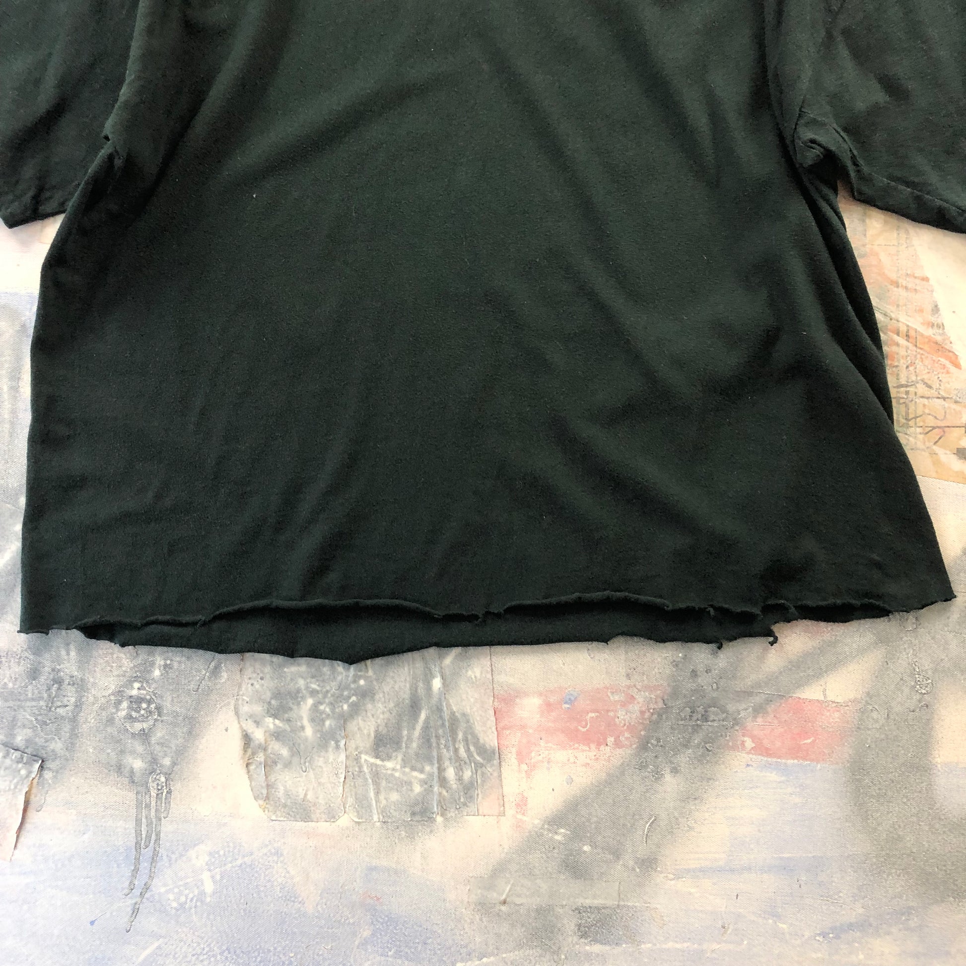 Condition: Custom cropped and distressed on hemline. Faded, used in worn condition.