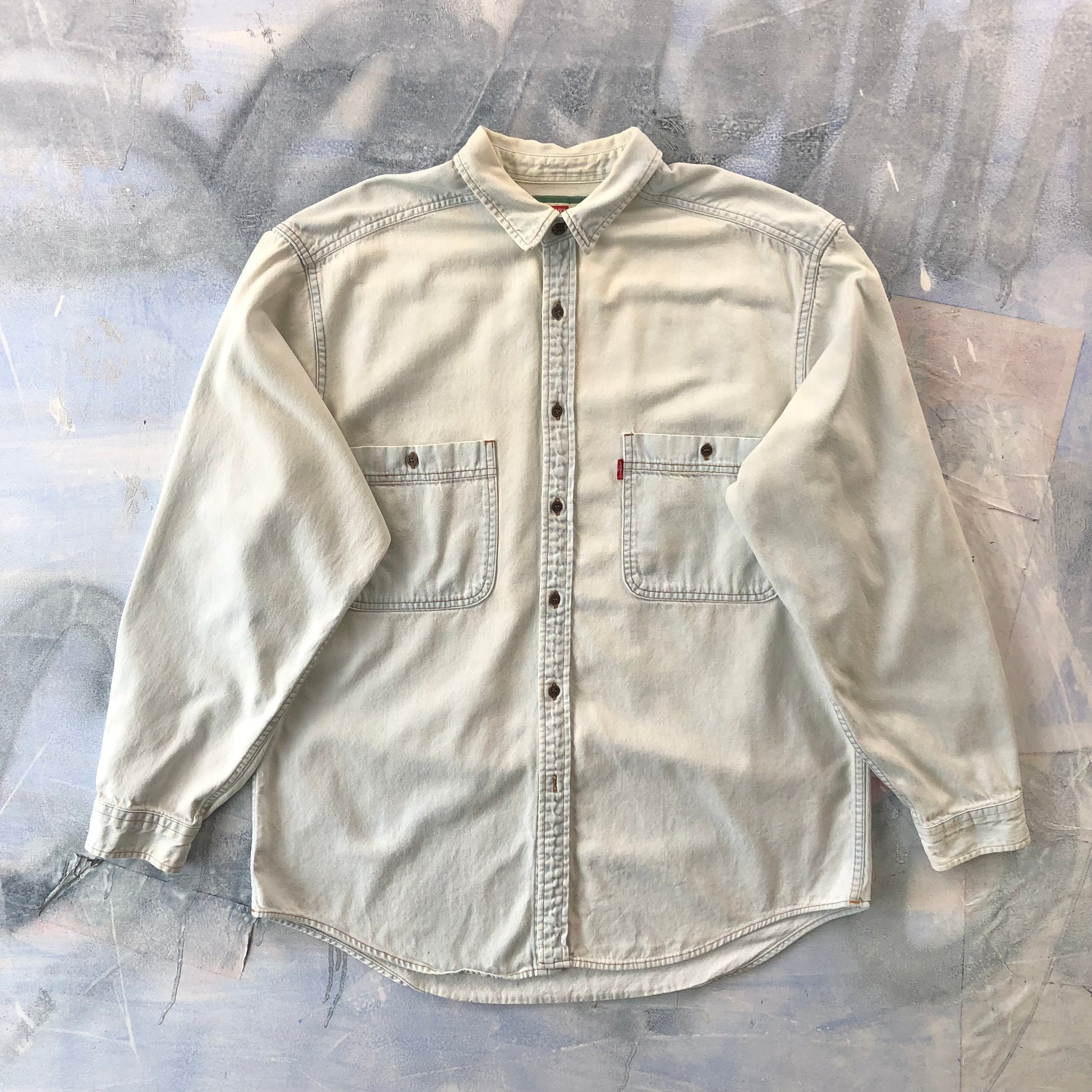 Condition: Missing last bottom button on front side although has extra button inside to replace. Light stain on front chest pocket and back side. Used in worn condition.