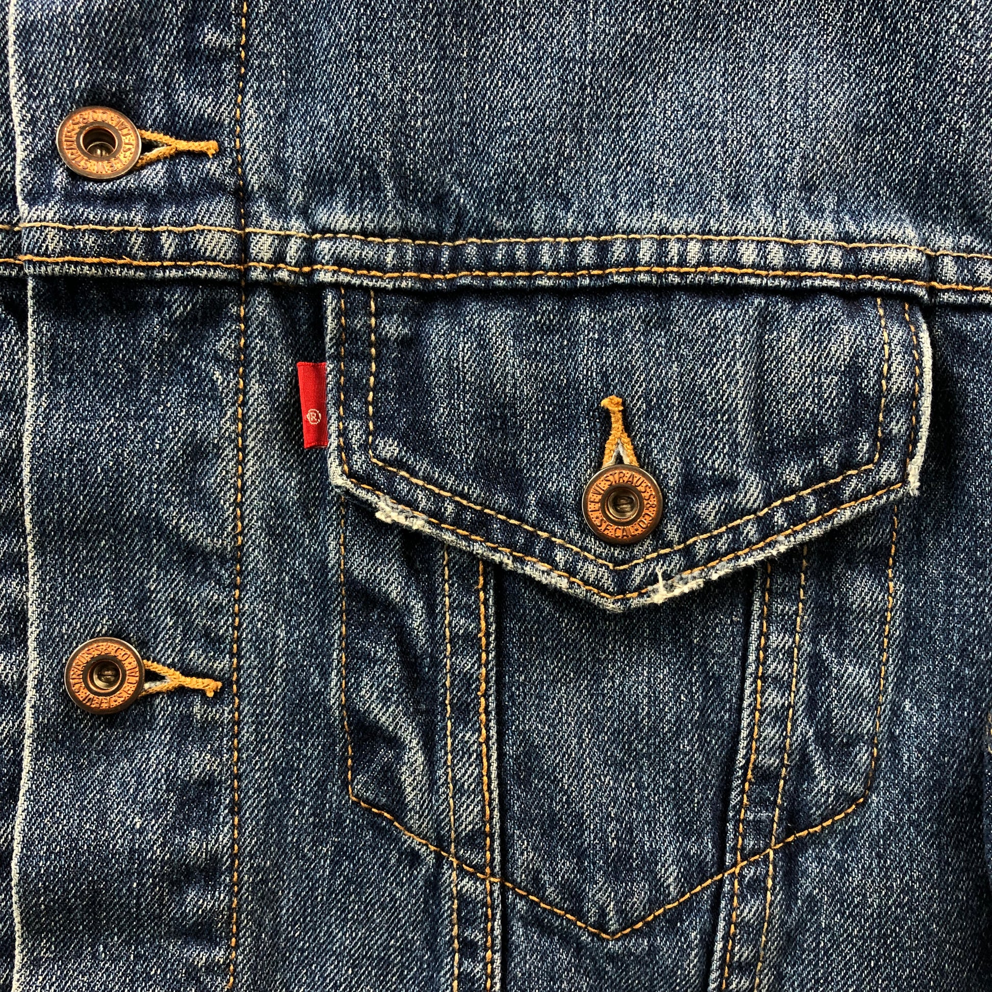 Condition: Some scuffs/wear on collar and chest pockets. Used in worn condition.