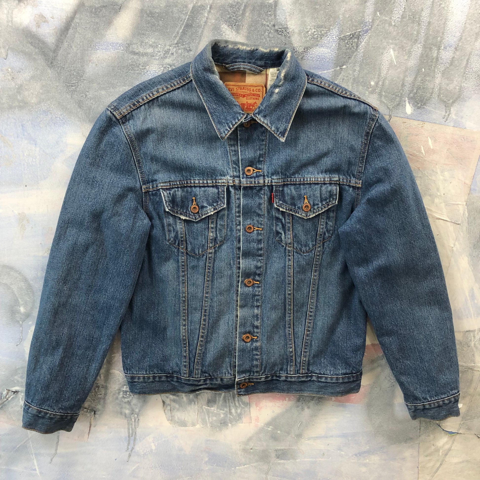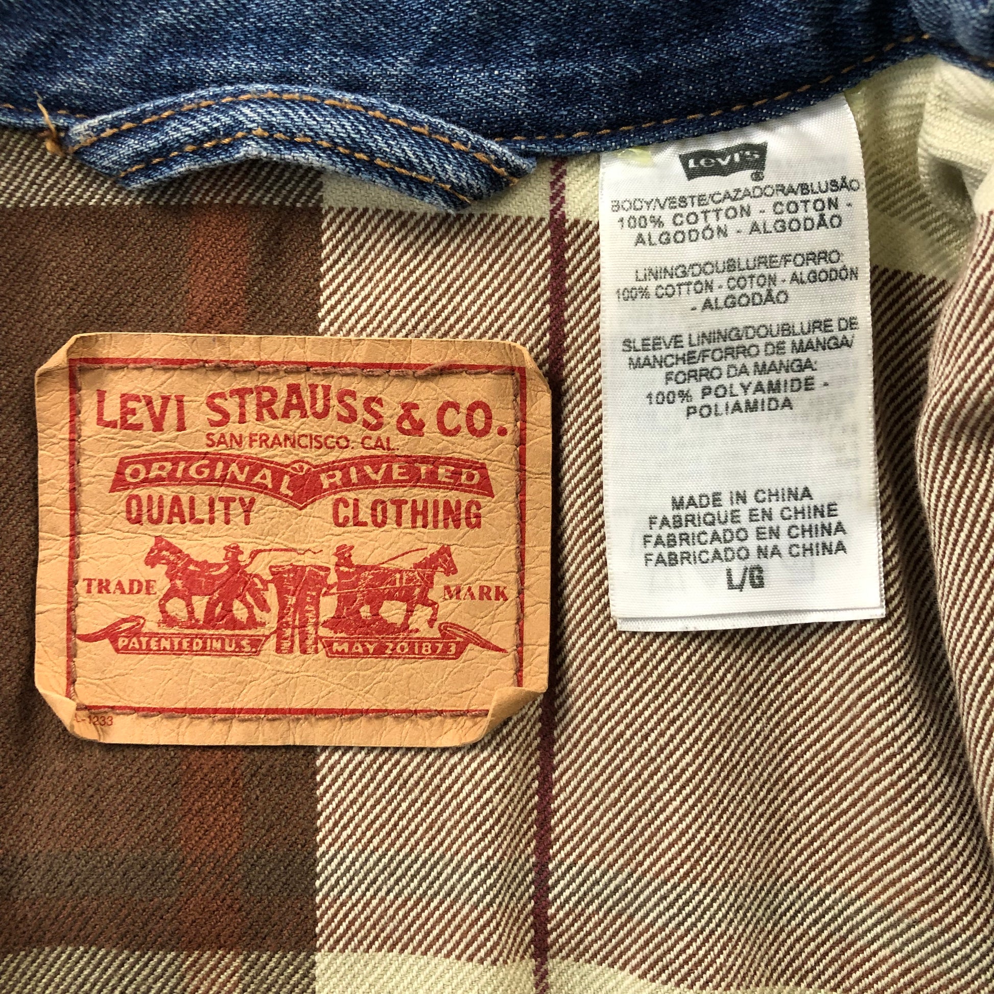 Vintage Levis Plaid Lined Denim Button Jacket L