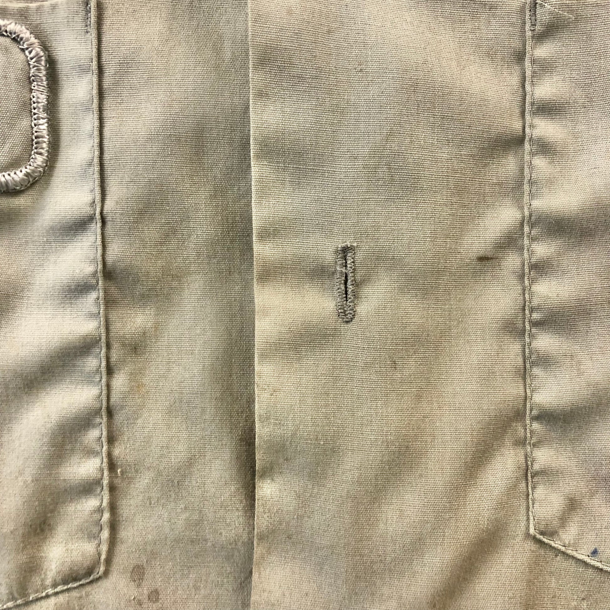 Condition: Missing patches. Dirt stains on front and back side. Missing one front side button. Faded, used in worn condition.