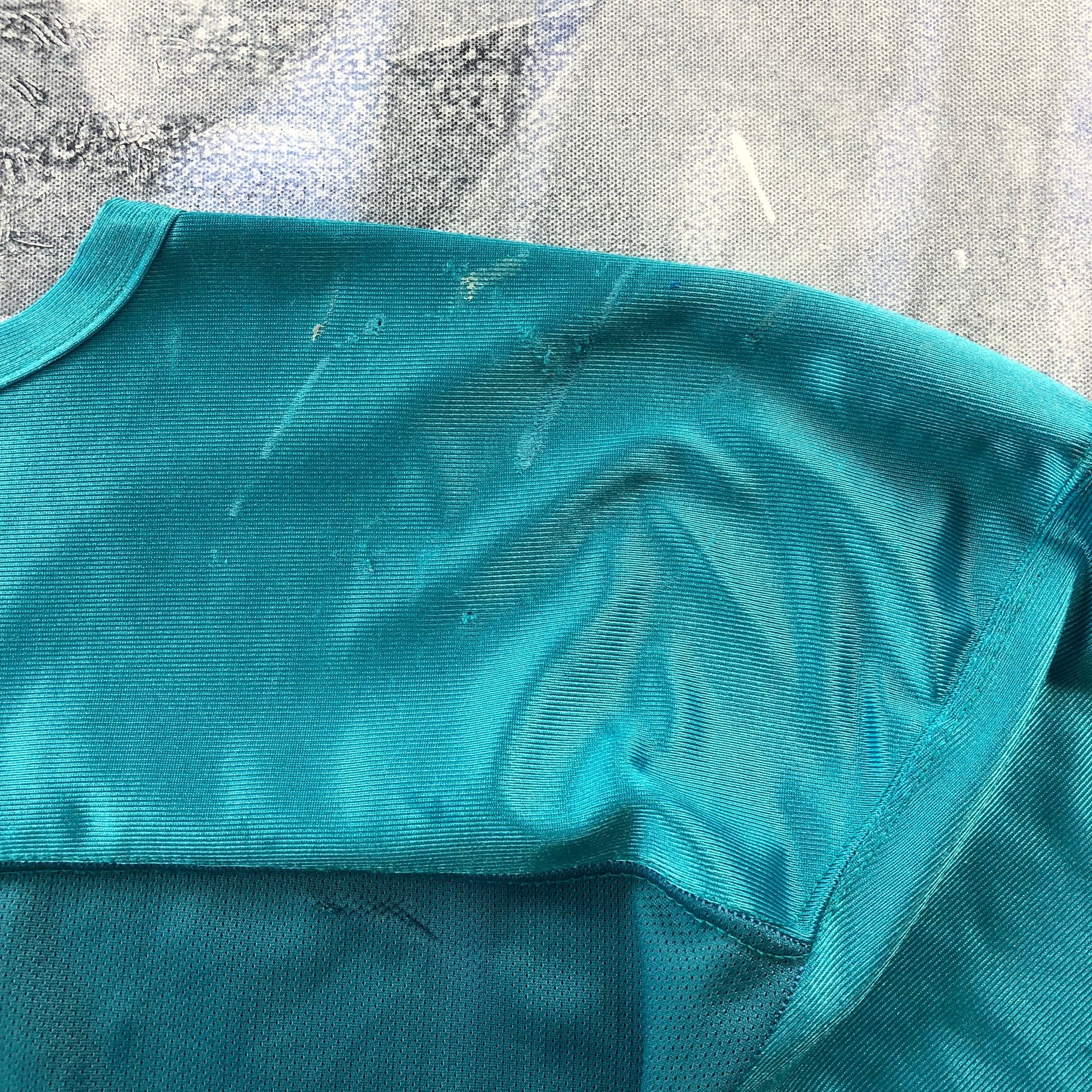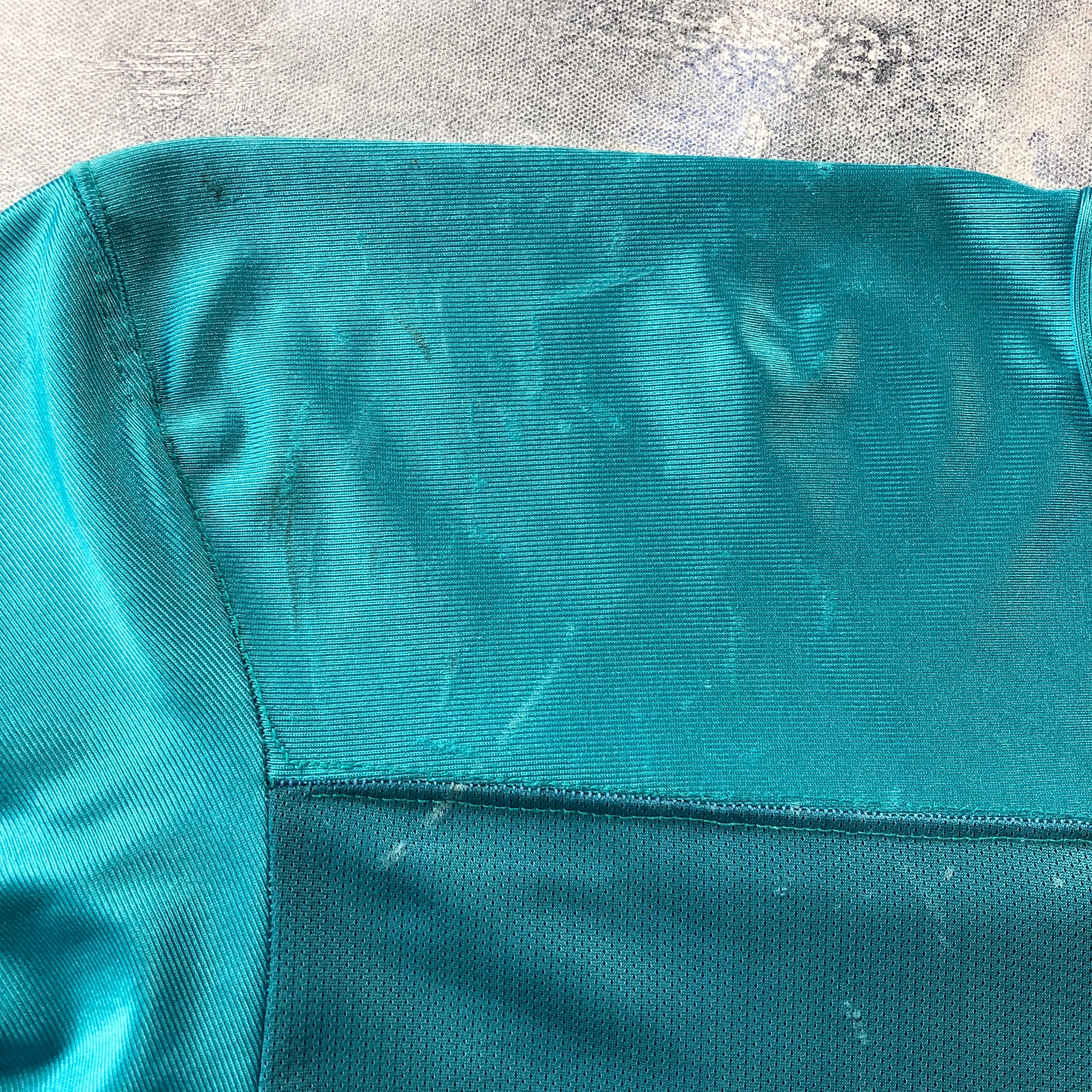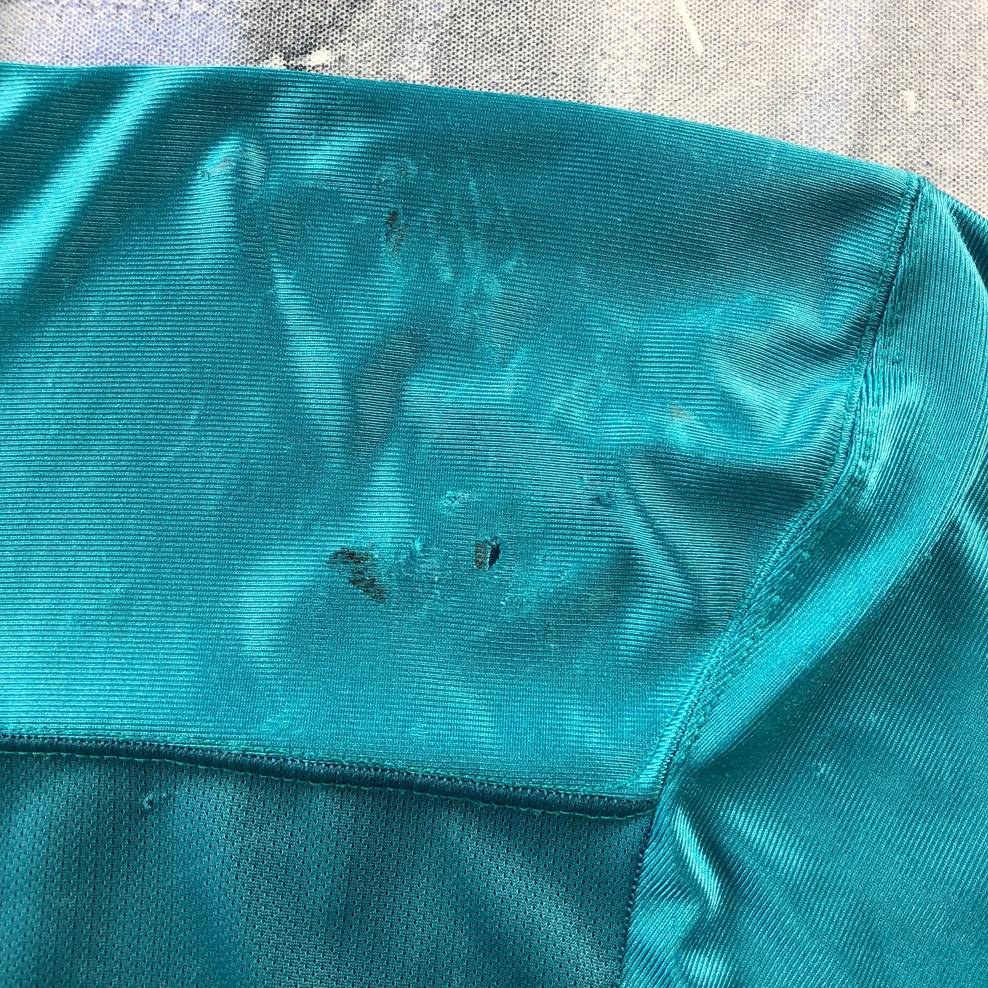Condition: Light scuffs, stains and fraying on shoulders. Bit of fading on front number logo. Used in worn condition.