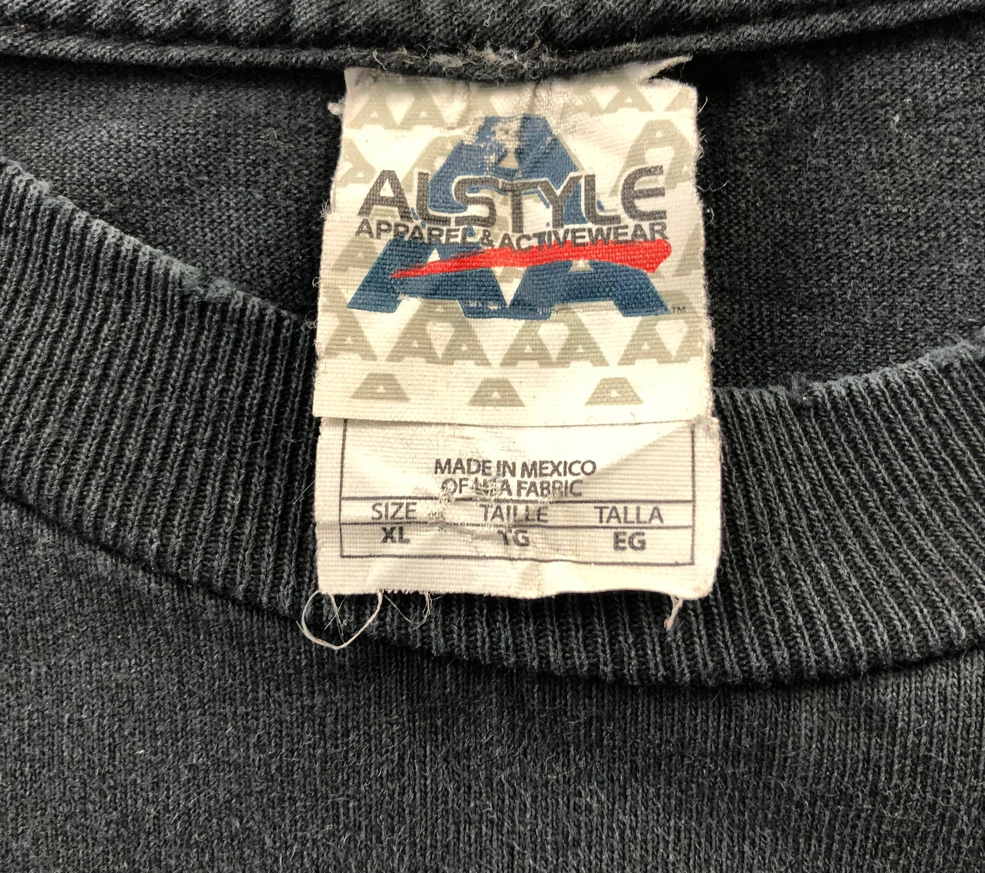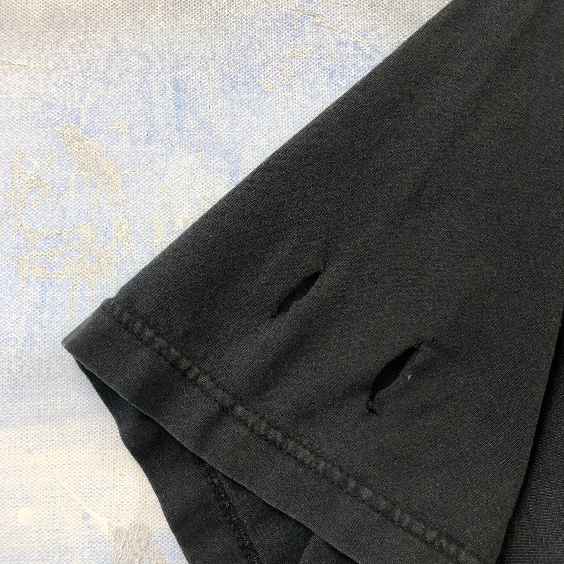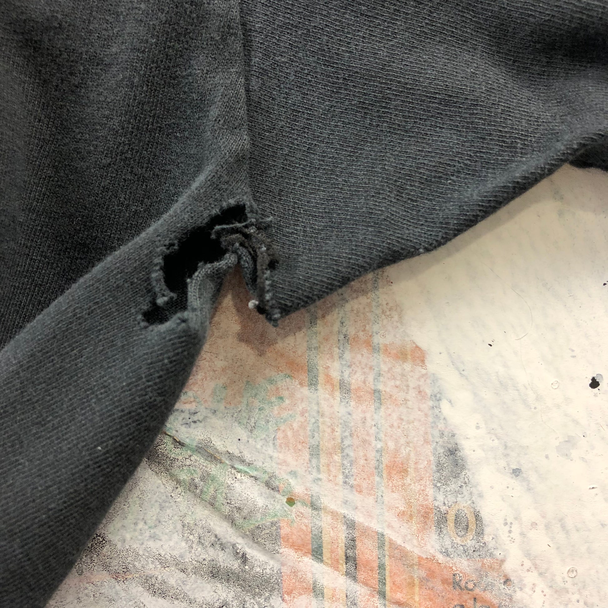 Condition: Couple small holes on right sleeve. Small hole in left armpit side. Faded. Used in worn condition.