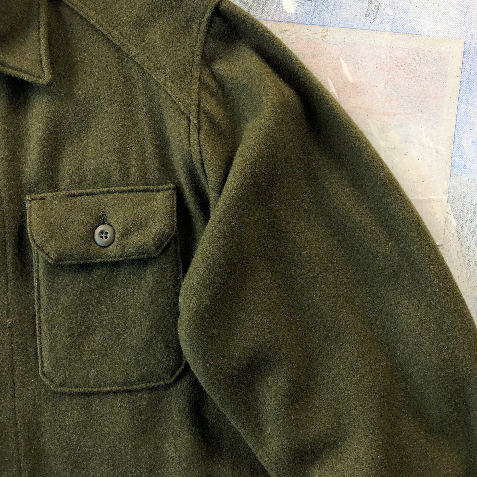Vintage USA 80s Military 108 Flannel Wool Fleece Button Shirt L