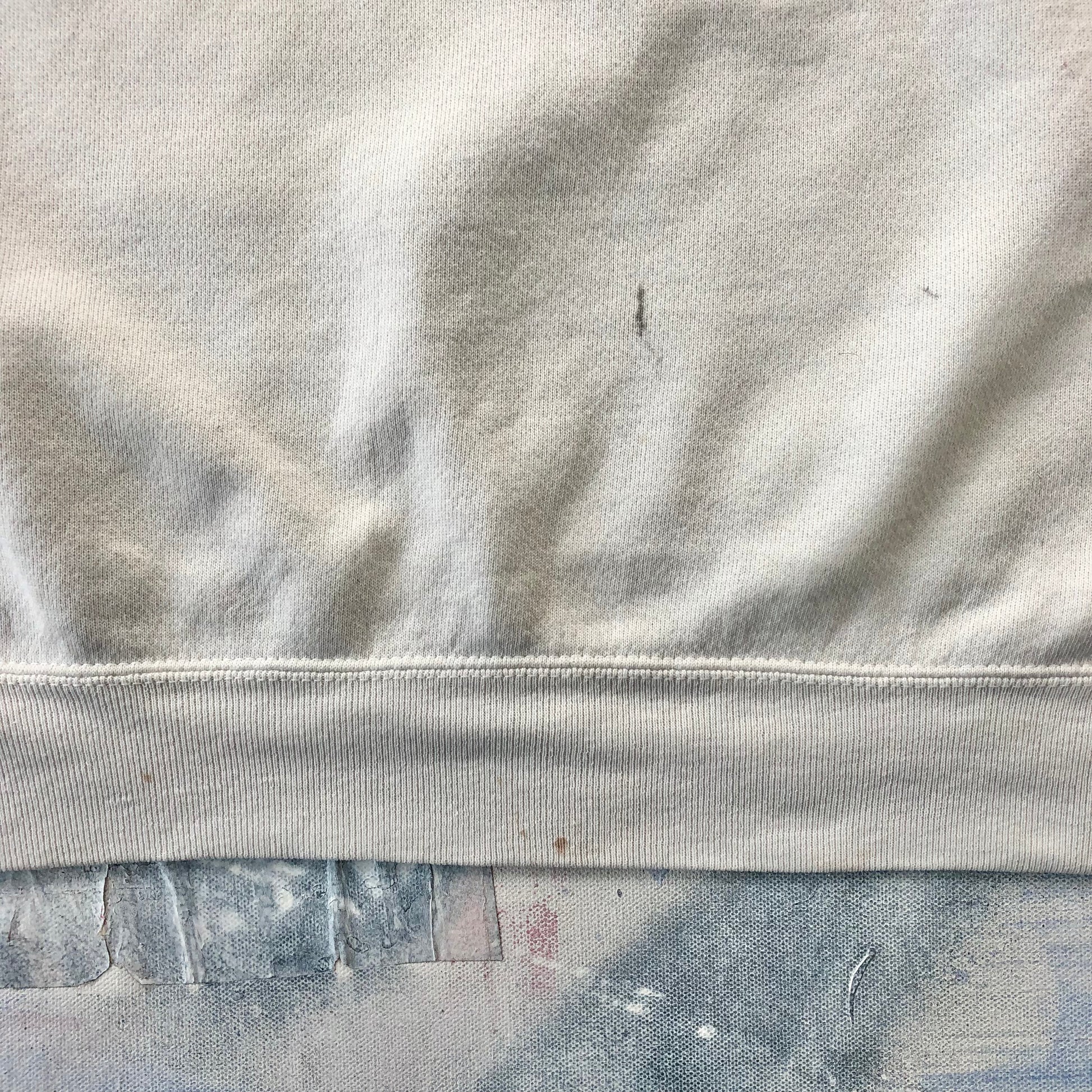 Condition: Light stain on front side and right sleeve. Used in worn condition.