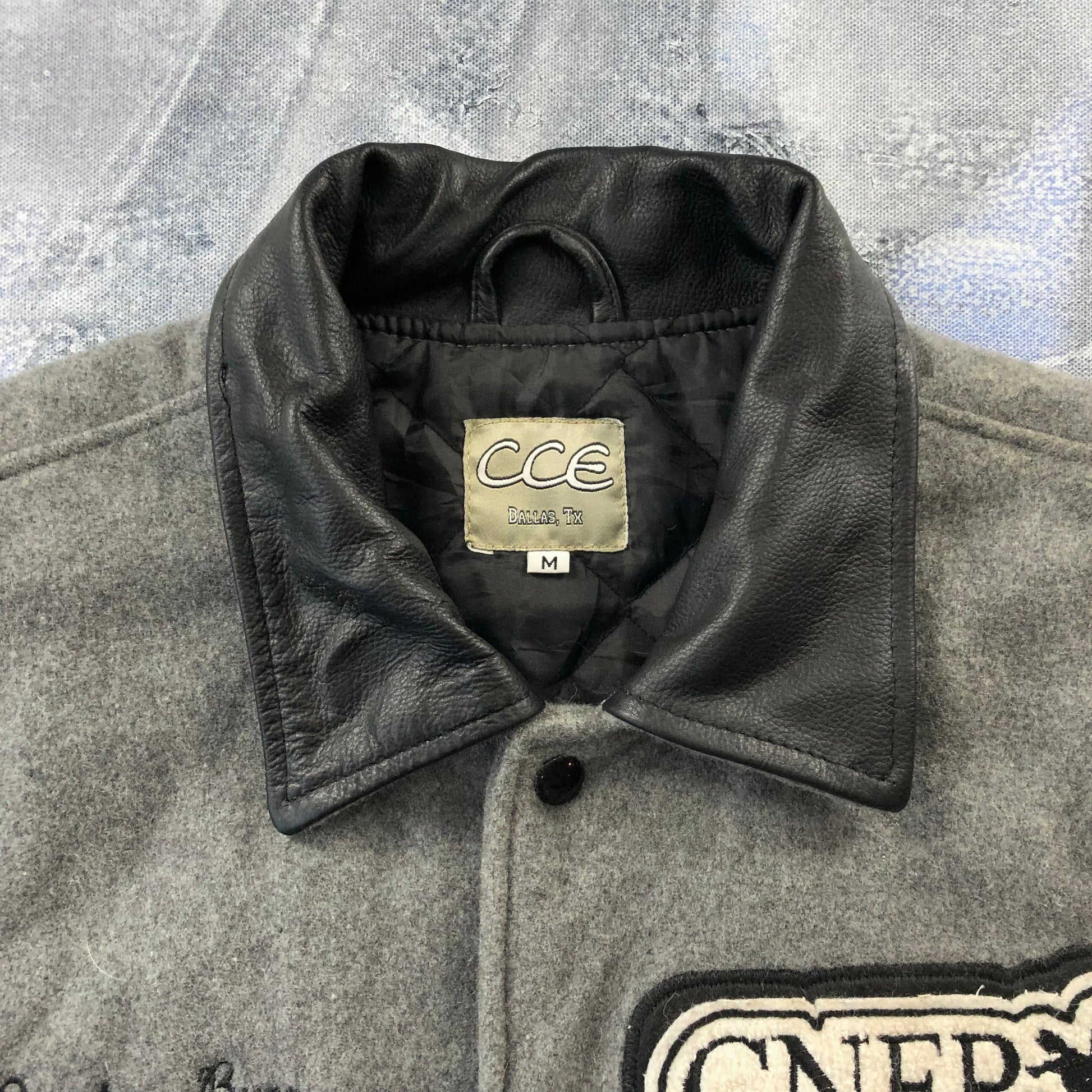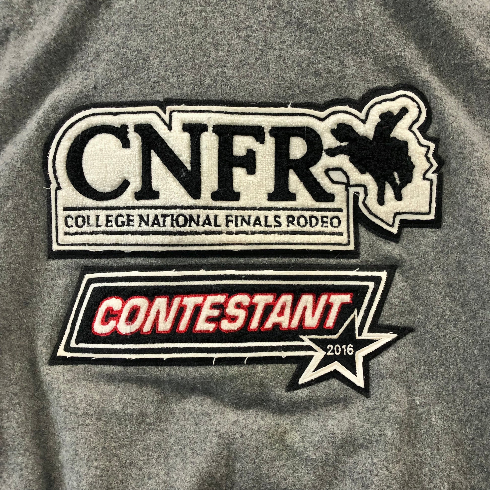 Vintage USA College National Finals Rodeo Leather Collar Quilted Lined Wool Button Vest M