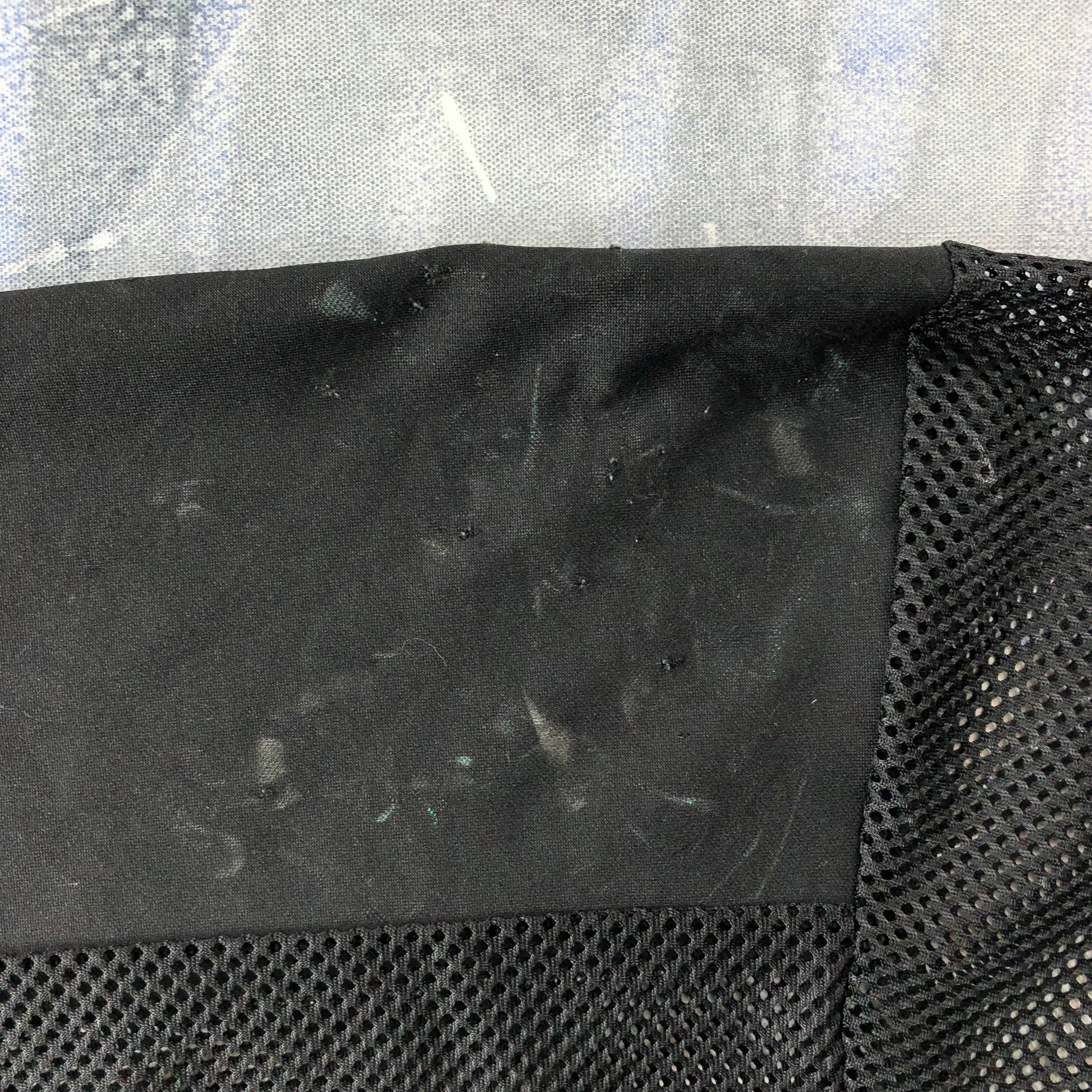 Condition: Small hole on right sleeve. Light fraying and wear marks on shoulders. Used in worn condition.
