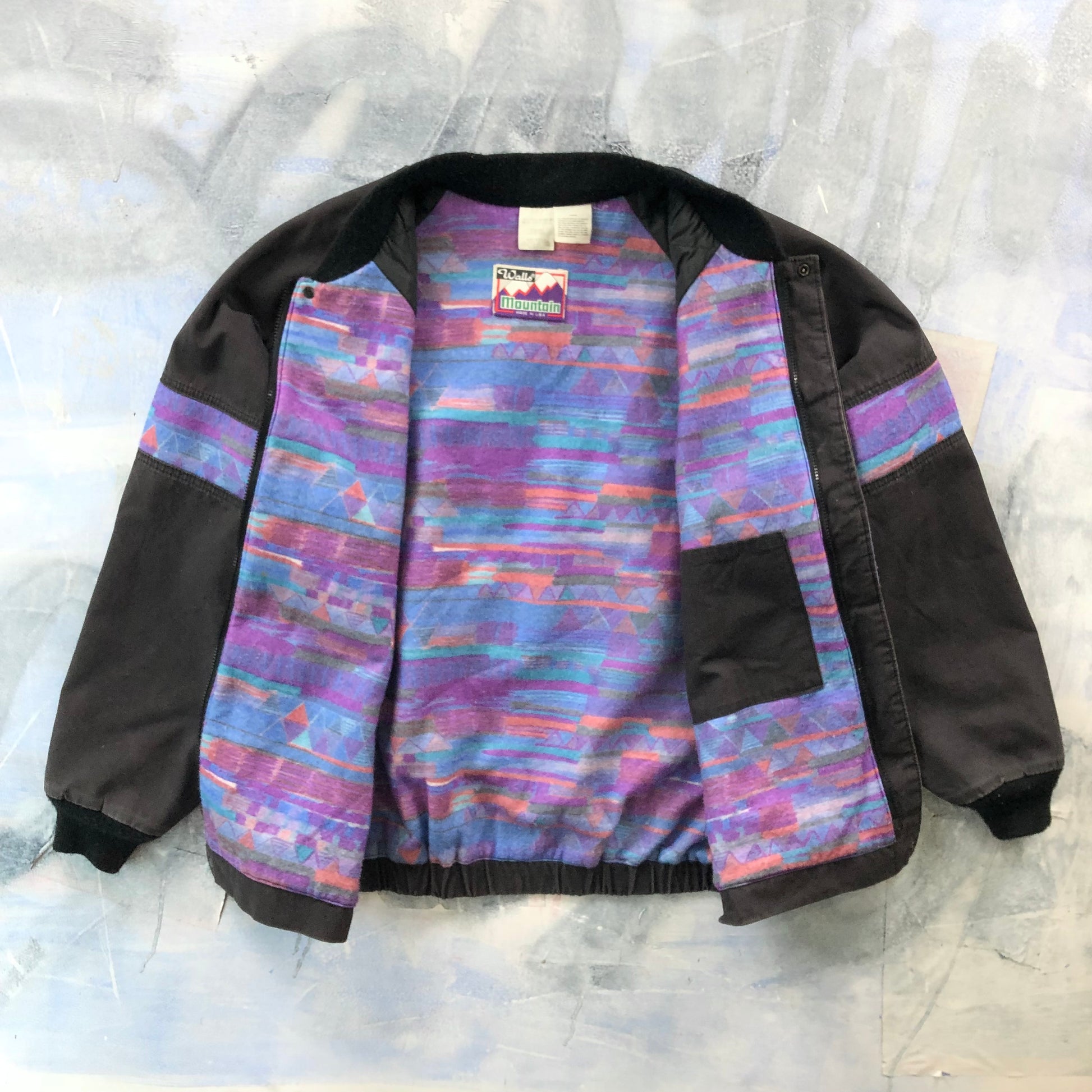 Vintage USA Walls Mountain Canvas Aztec Blanket Lined Bomber Zip Jacket XXL