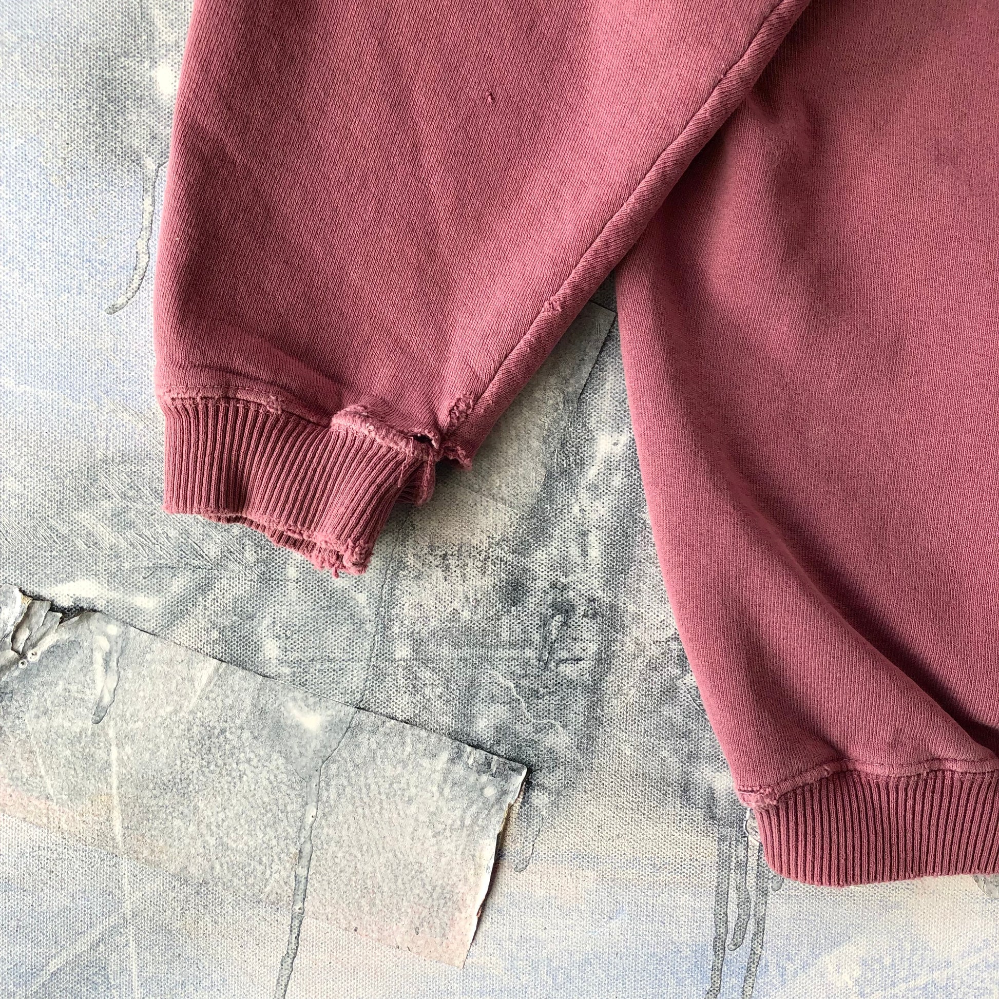Condition: Distressed on sleeves and collar. Faded, used in worn condition.