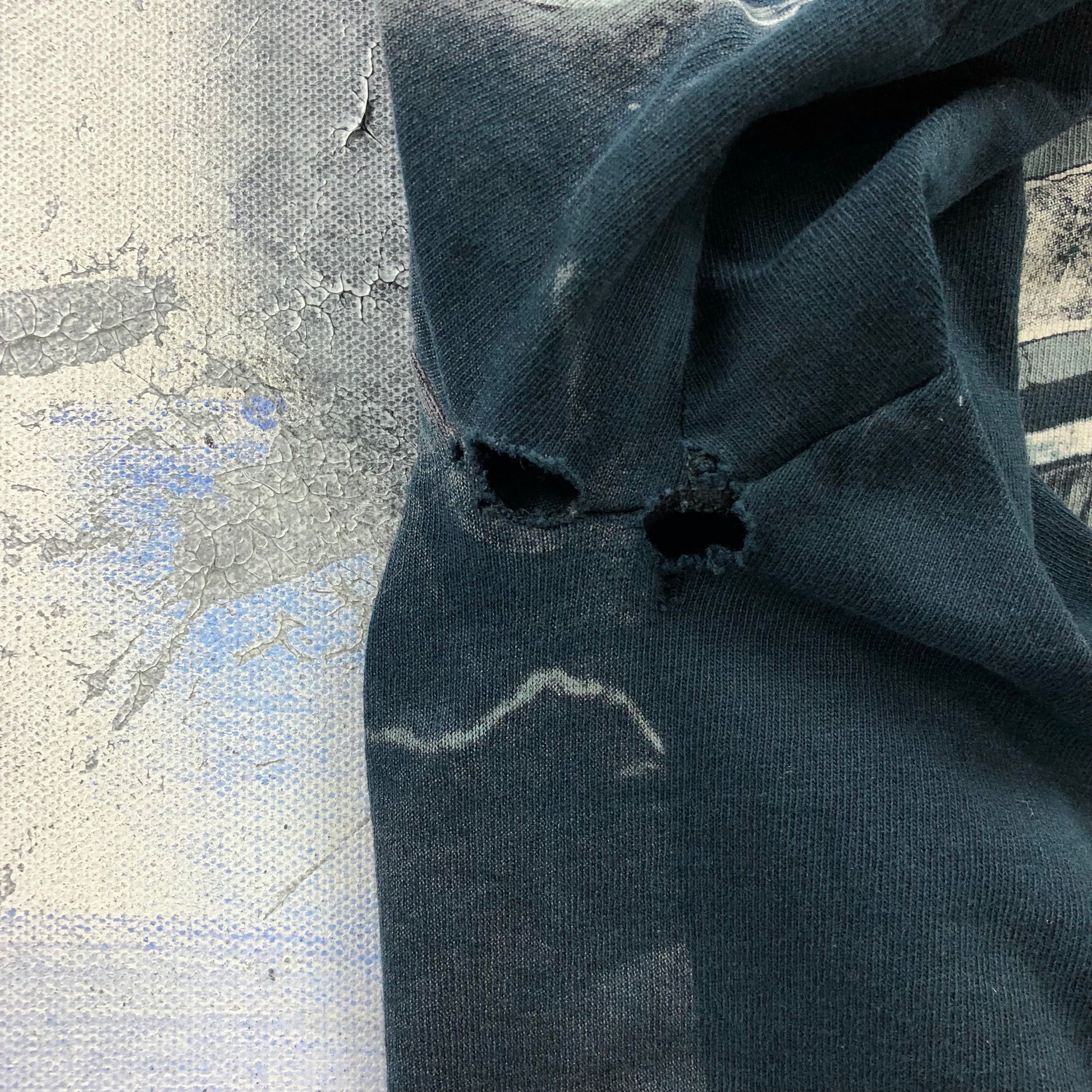 Condition: Couple holes on right armpit. Faded. Used in worn condition.