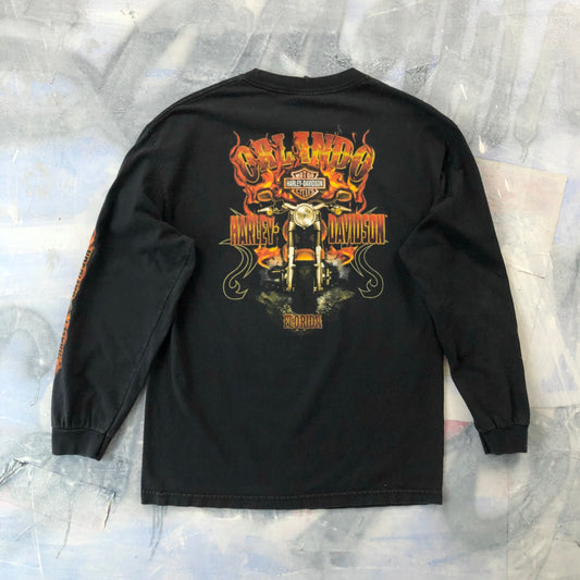 Vintage Orlando Florida Harley Davidson Motorcycles Flames Long Sleeve T Shirt L