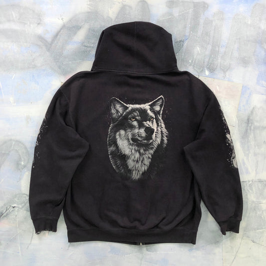 Vintage Wolf Pack Hoodie Zip Sweatshirt XXL